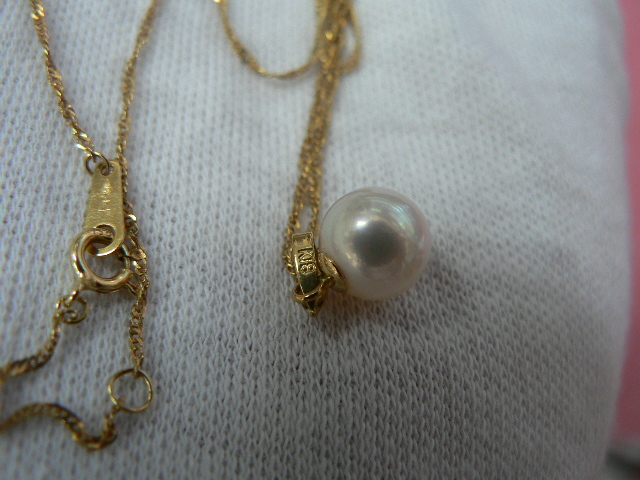 美品 中古 K18 真珠 ペンダント付 K18 ネックレス
