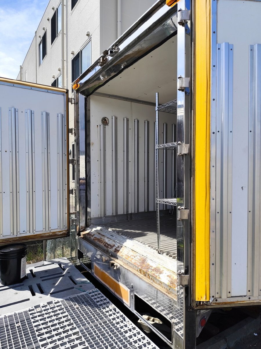 ●中古 トラックコンテナ 観音開きの扉が1ヶ所あります。 外寸は、幅 約560cm x 奥行 約220cm x 高さ 約229cm 程でした。 ※素人が計測したため、おおよその目安として頂き、設置場所は余裕をもってお考え下さい。 内部に置かれたラック3台は、ご希望があればお付けできます! ●基本的に発送不可、落札者様の引取りのみ対応とさせていただきます。 送料0円と表示されておりますが、引取り・輸送にかかる一切の費用は落札者様負担となります。 ノークレームノーリターン厳守となりますので、できる限り事前に現物確認をお勧めします。 ご理解いただいた上でご入札下さい。 ●引取のお手配がご自身ではどうしても難しい場合、ご相談いただければお調べすることも可能です。 周辺の道路状況などお話をお伺いし、配送が可能な場合は配送料を見積もりいたします。 ●中古のコンテナとなりますので、傷・汚れ・劣化等 諸々ご考慮のうえご入札下さい。 商品はコンテナの箱・本体のみ・現状販売となります。 なお、本体とラック3台以外は一切含まれませんのでご承知おきください。 過度な要求をなさる方・細かいことを気にされる方は 購入をお控えください。 ●ほかにも関連商品を格安出品中!! ぜひご一緒にご検討ください! ★関連リンク →クリック |