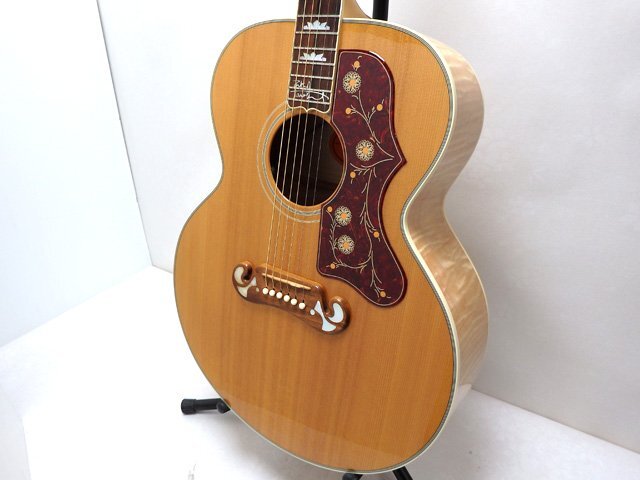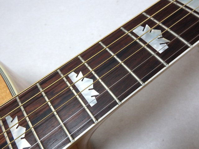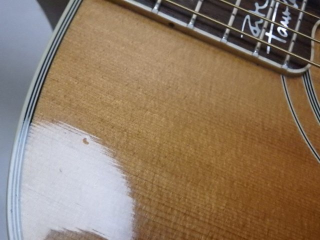 シグネチャーモデル。 トップ材に厳選されたシトカスプルース、バック・サイド、ネックにはフレイムメイプルを使用。ローズウッドの指板にはピートのサインがパール材で施されています。 初期の50本はサウンドホールのラベルに直筆サインが入っていたようですがこちらのギターはその後に生産されたサインなしの個体です。 Body Shape:SJ-200 Top:Sitka spruce Back:Flame maple Side:Flame maple Finish:Nitrocellulose NeckMaterial:maple Fingerboard Material:Rosewood Electronics:LR Baggs 【中古品】 ボディに僅かにスレや小さな打痕、ネックにウェザーチェック(ボディトップにも少し)、ペグにくすみがあります。大きなダメージは無く全体的には綺麗な状態。ネックはほぼストレート、フレット残9~8割、弦高 12F 1弦側約1.4mm、6弦側約2.5mm、出音確認済みです。ハードケースバックル1箇所破損有。 付属品:ハードケース、マニュアル類 別途:その他、いろいろ出品しています |