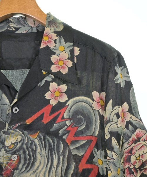 シーズン:春夏 ポケット:なし 透け感:なし 生地の厚さ:薄手 裏地:なし 伸縮性:なし 光沢:あり 開閉:ボタン 袖丈:半袖 柄:プリント・ロゴ |