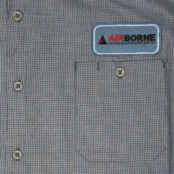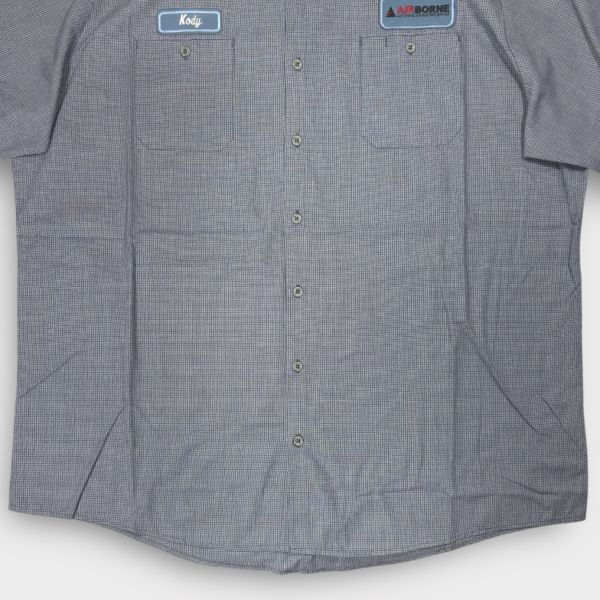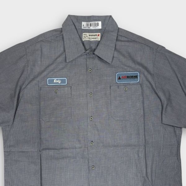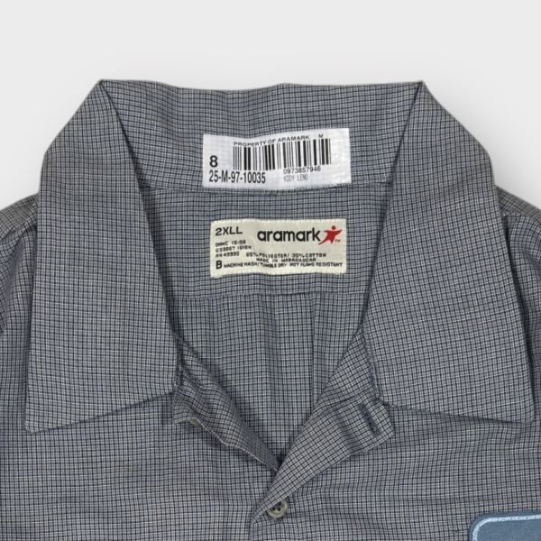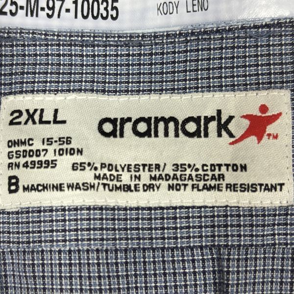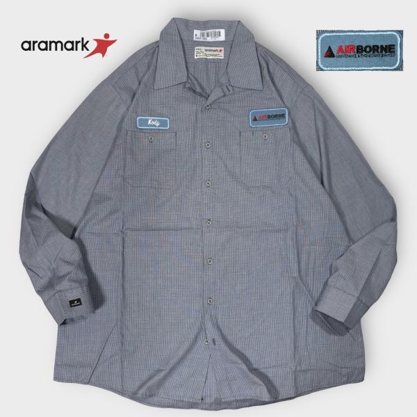 ★BIGサイズ★AIR BORNEロゴワッペン★aramark 長袖ワークシャツ size2XL 袖ピスネーム USA古着 クリーニング プレス済み 2484