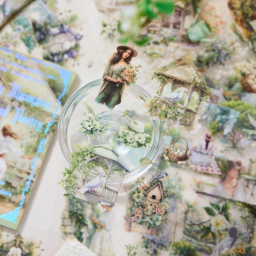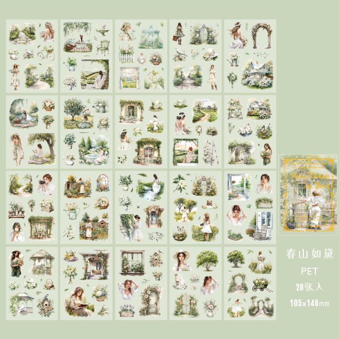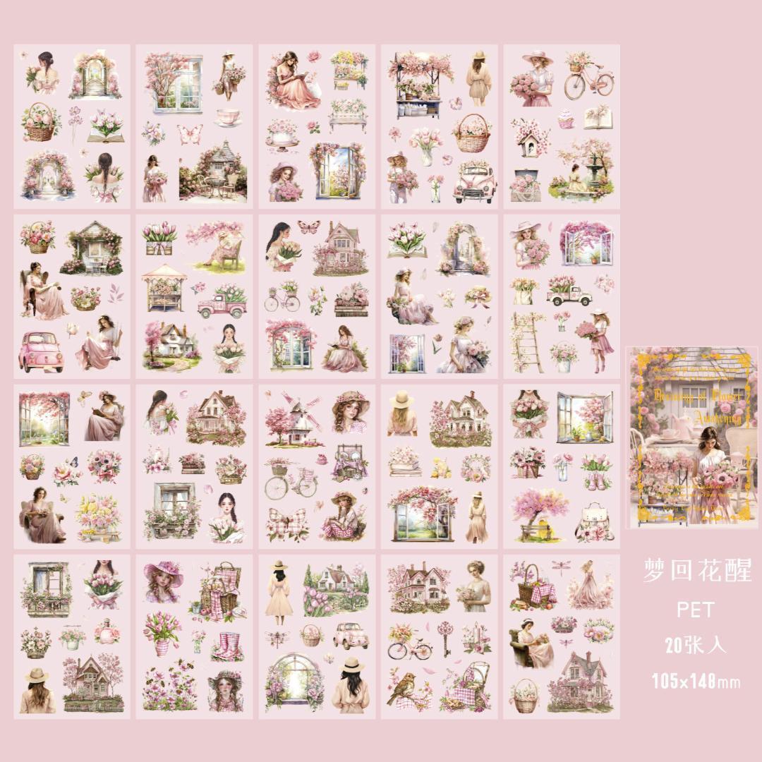 花、女の子、生活、風景デザインデザインのPET素材のシールブックです♪