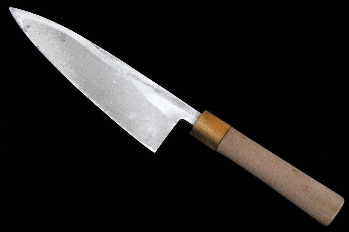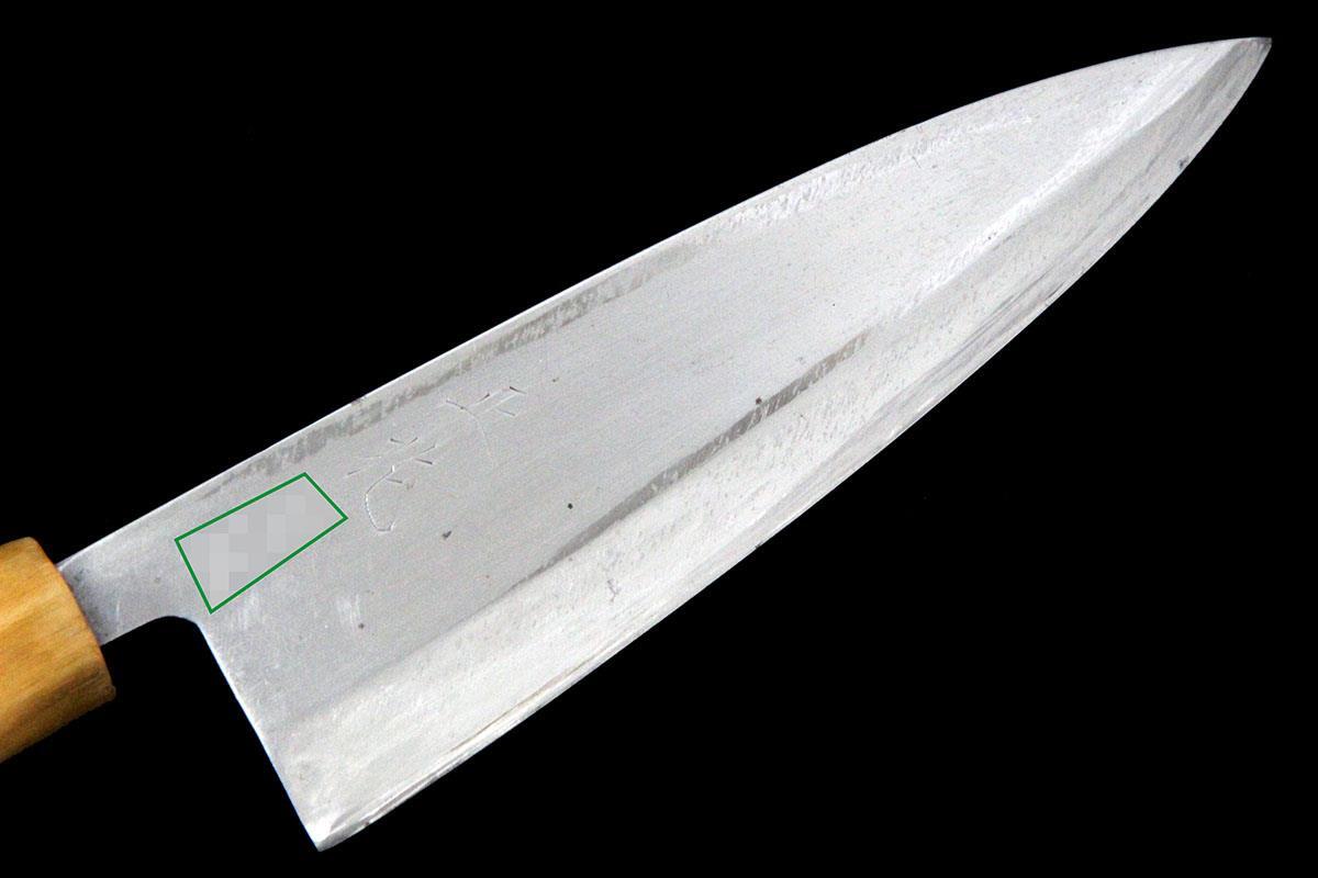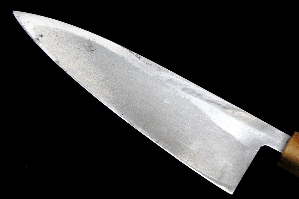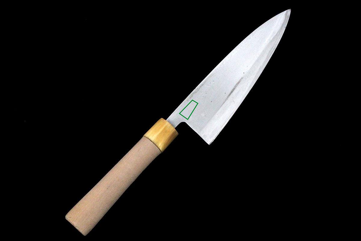 正花 出刃包丁 霞 六寸半 朴柄 名入