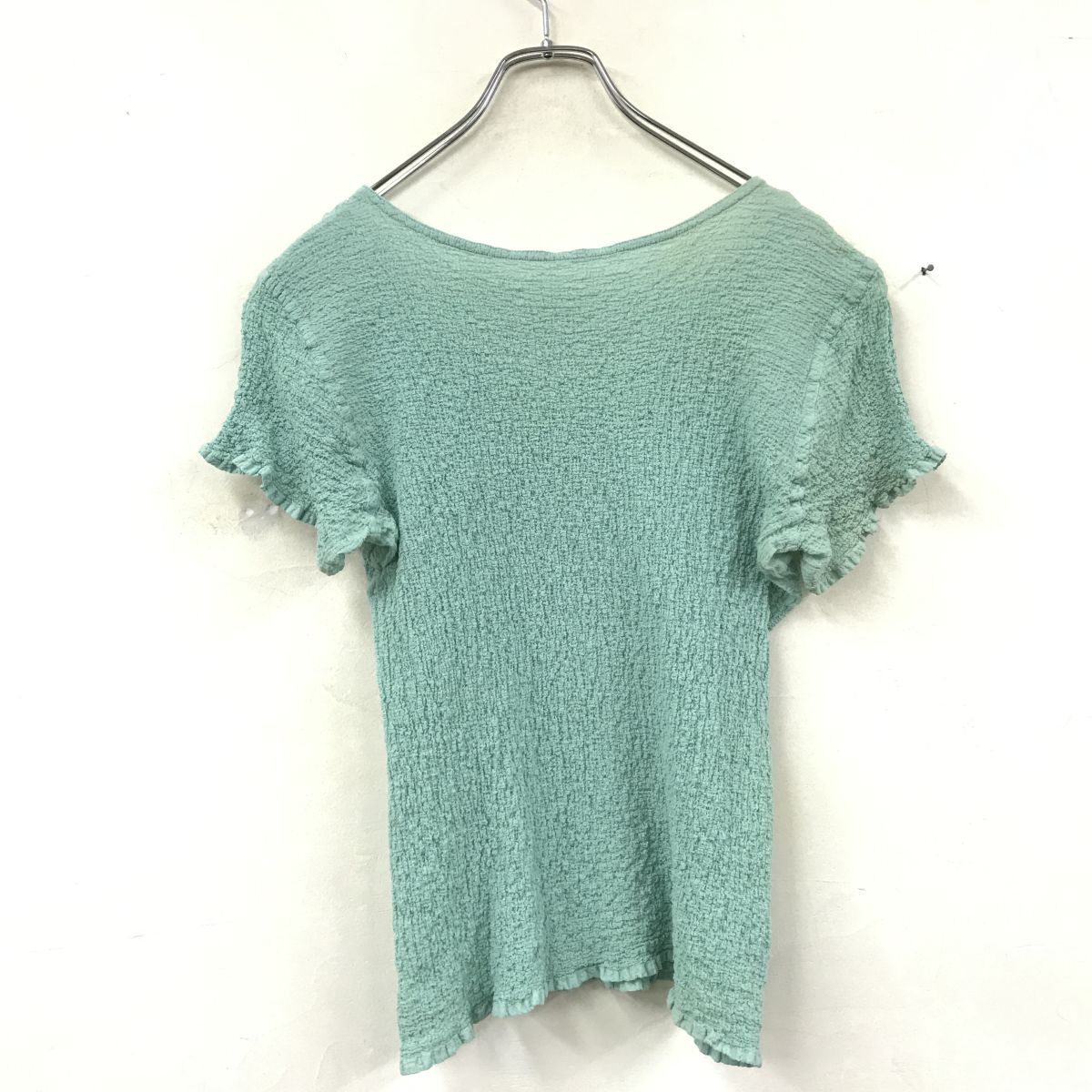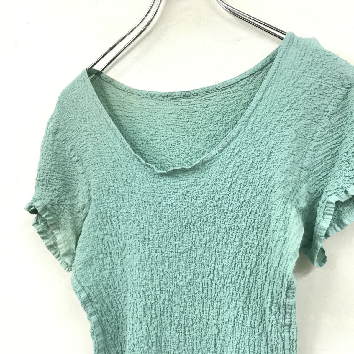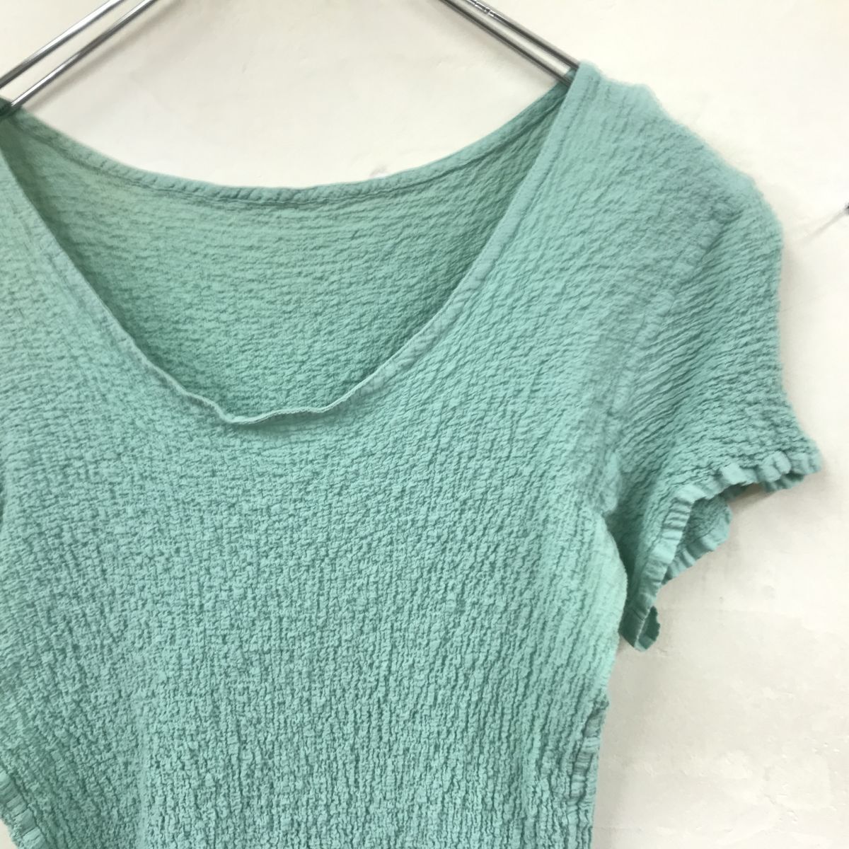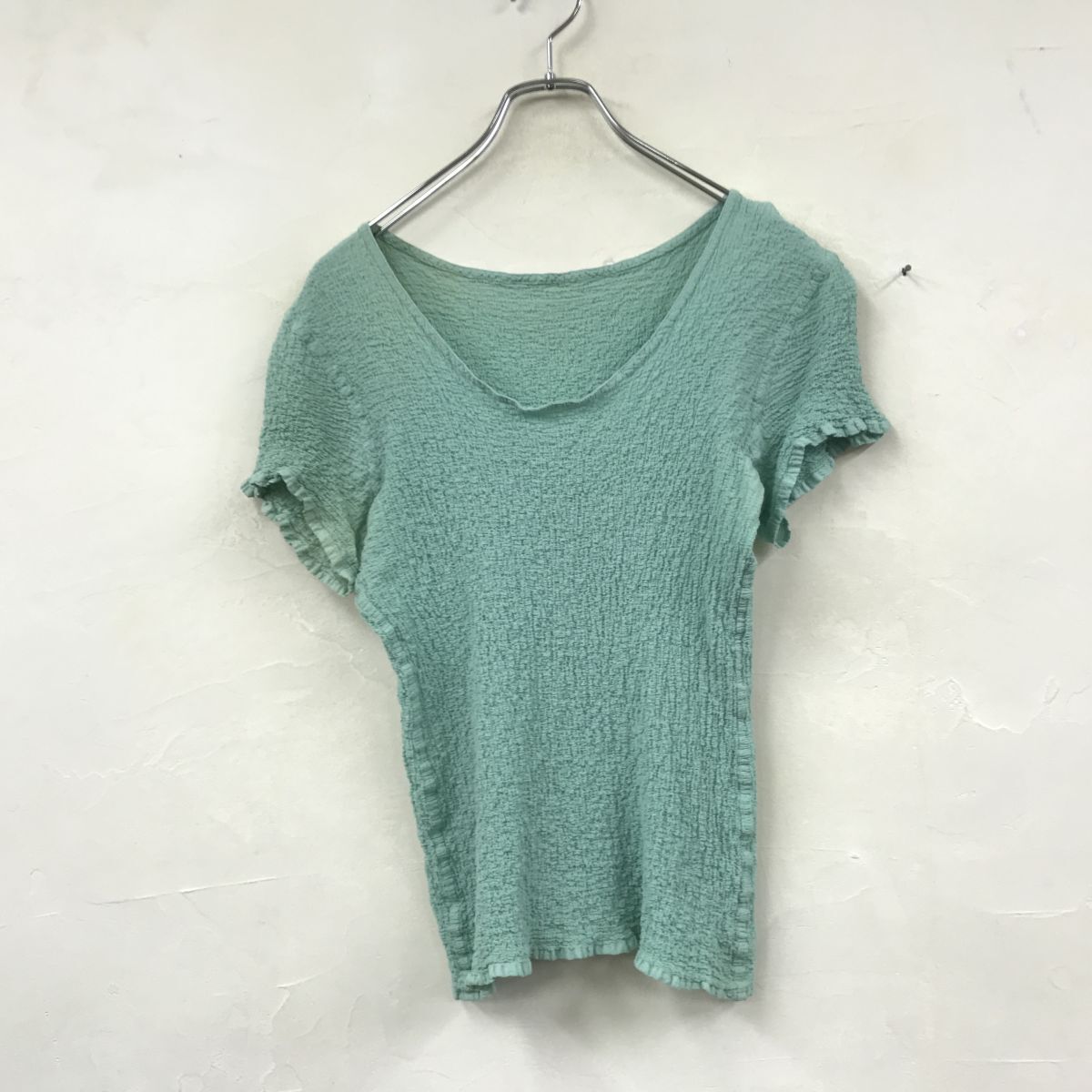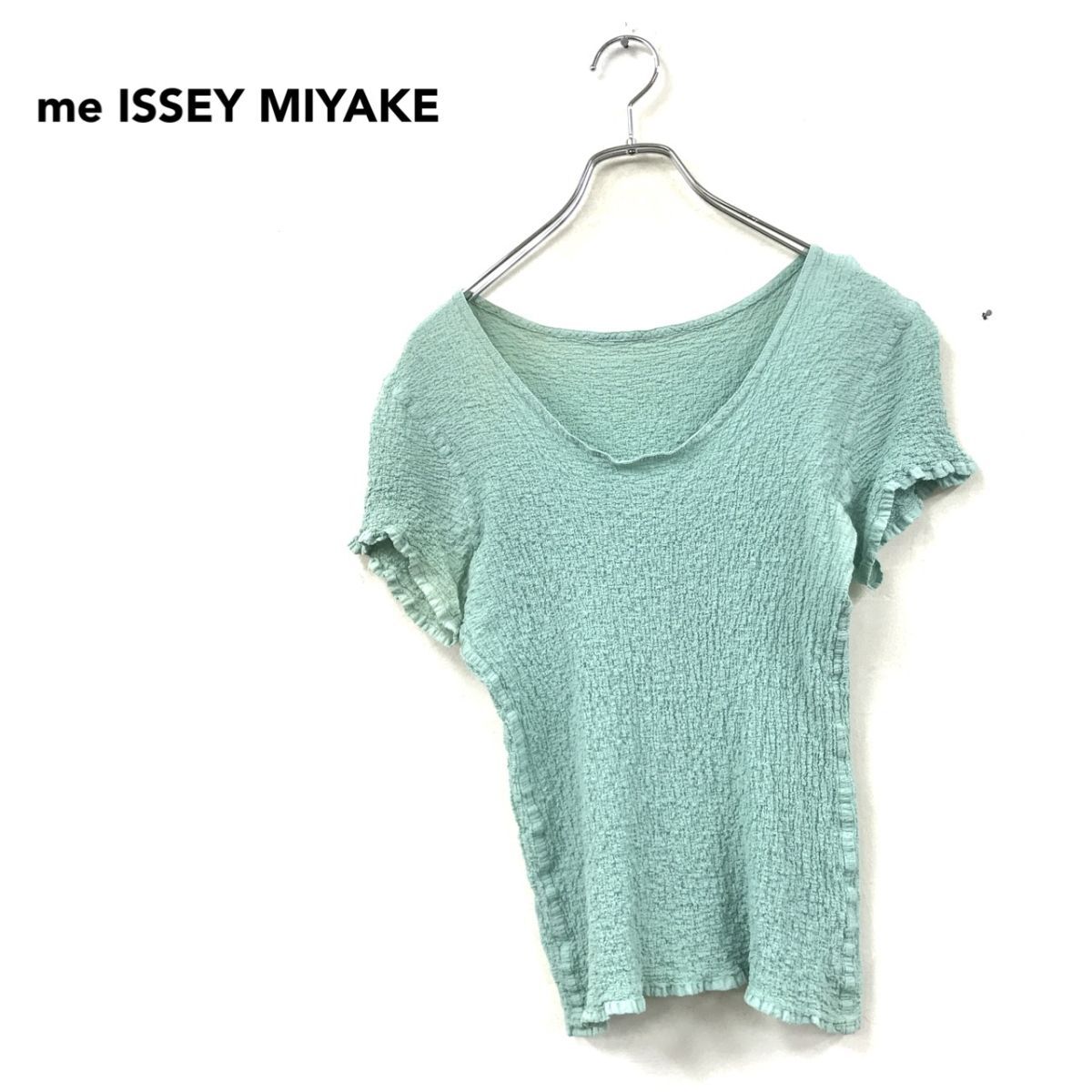 2H3158-D◆ me ISSEY MIYAKE ミー イッセイミヤケ プリーツカットソー ワッフルプリーツ 半袖 ◆ ライトグリーン コットン ストレッチ