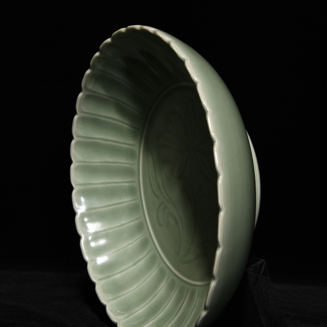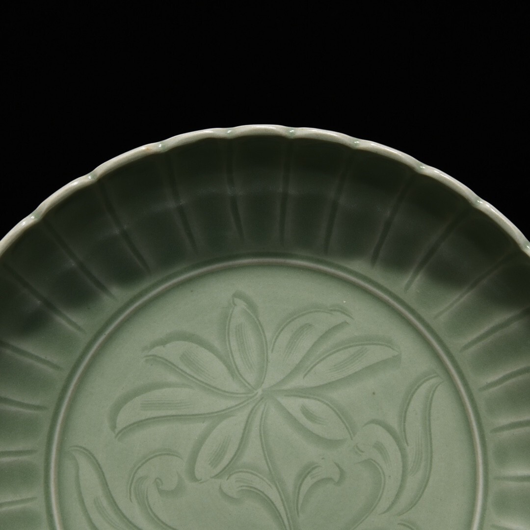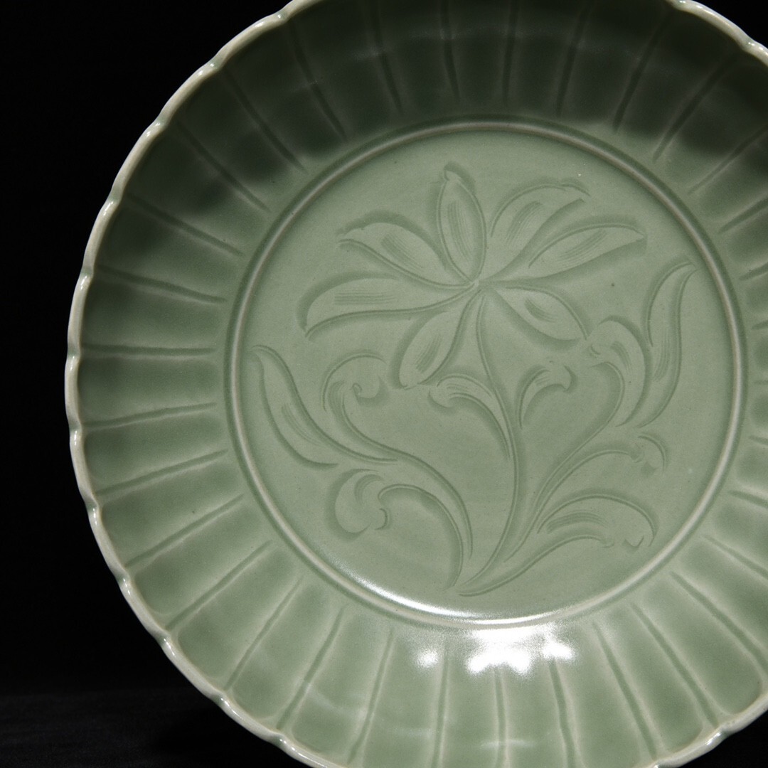 「宋 龍泉窯 陶磁器 刻花花卉紋 果盤」染付 置物 擺件 古賞物 中国古美術 旧蔵出