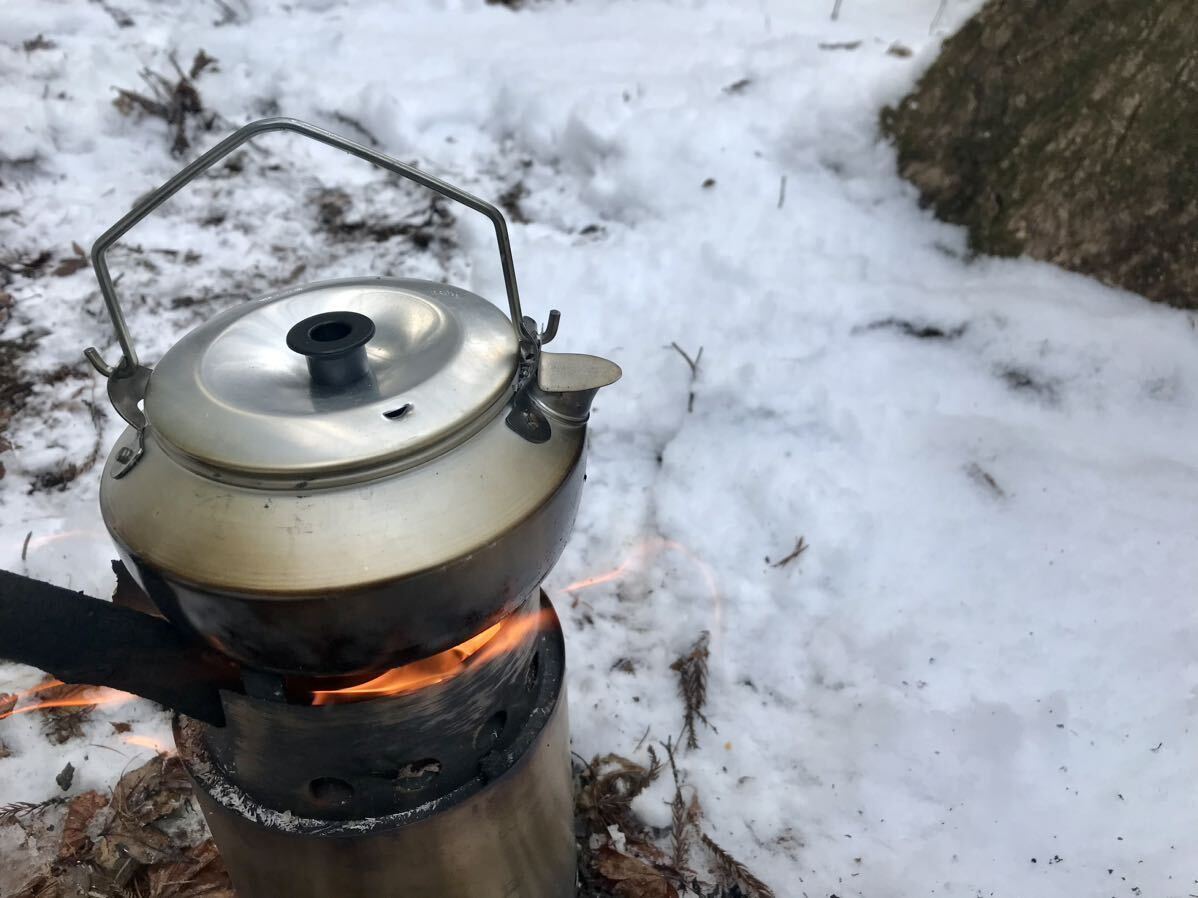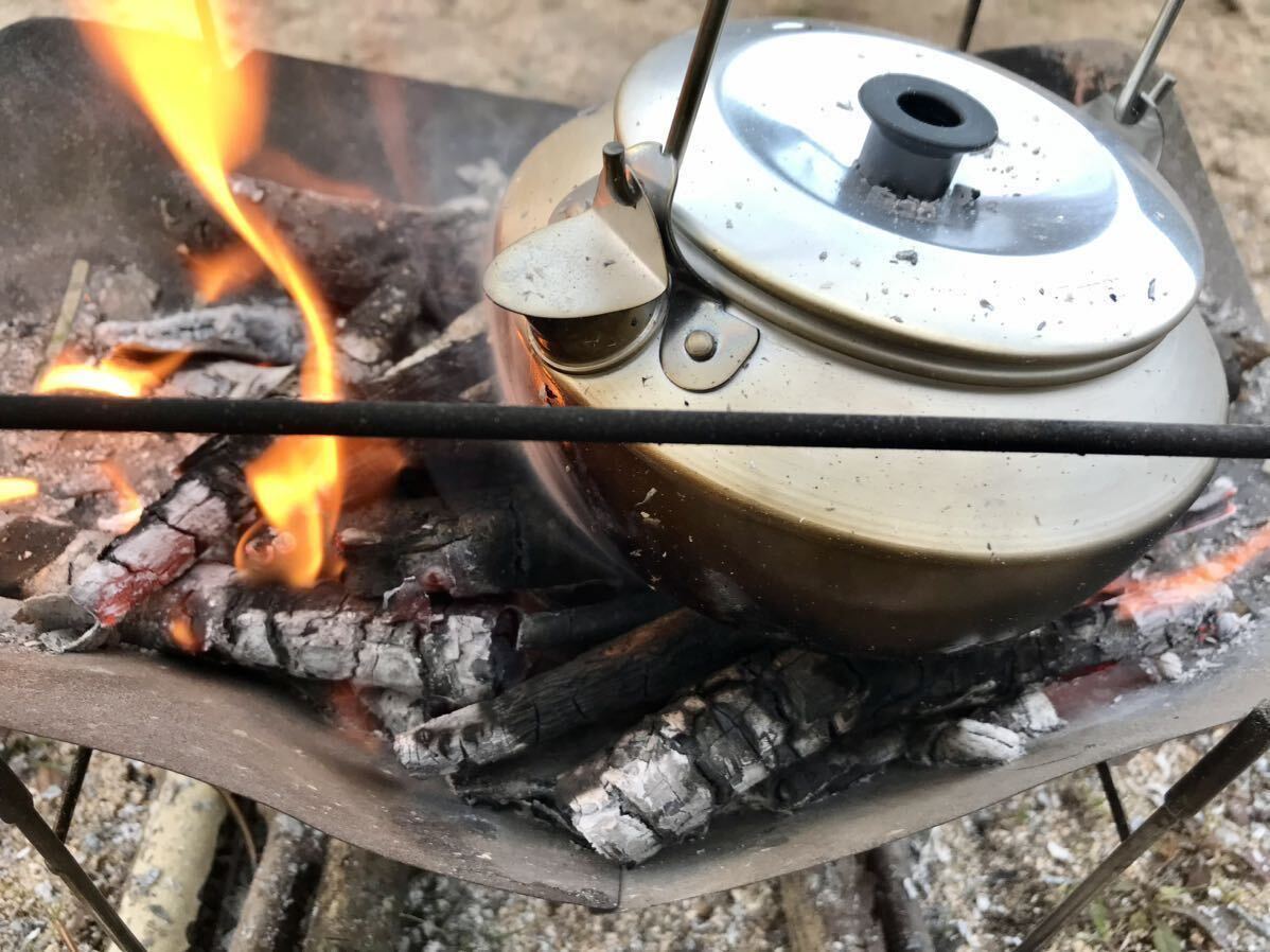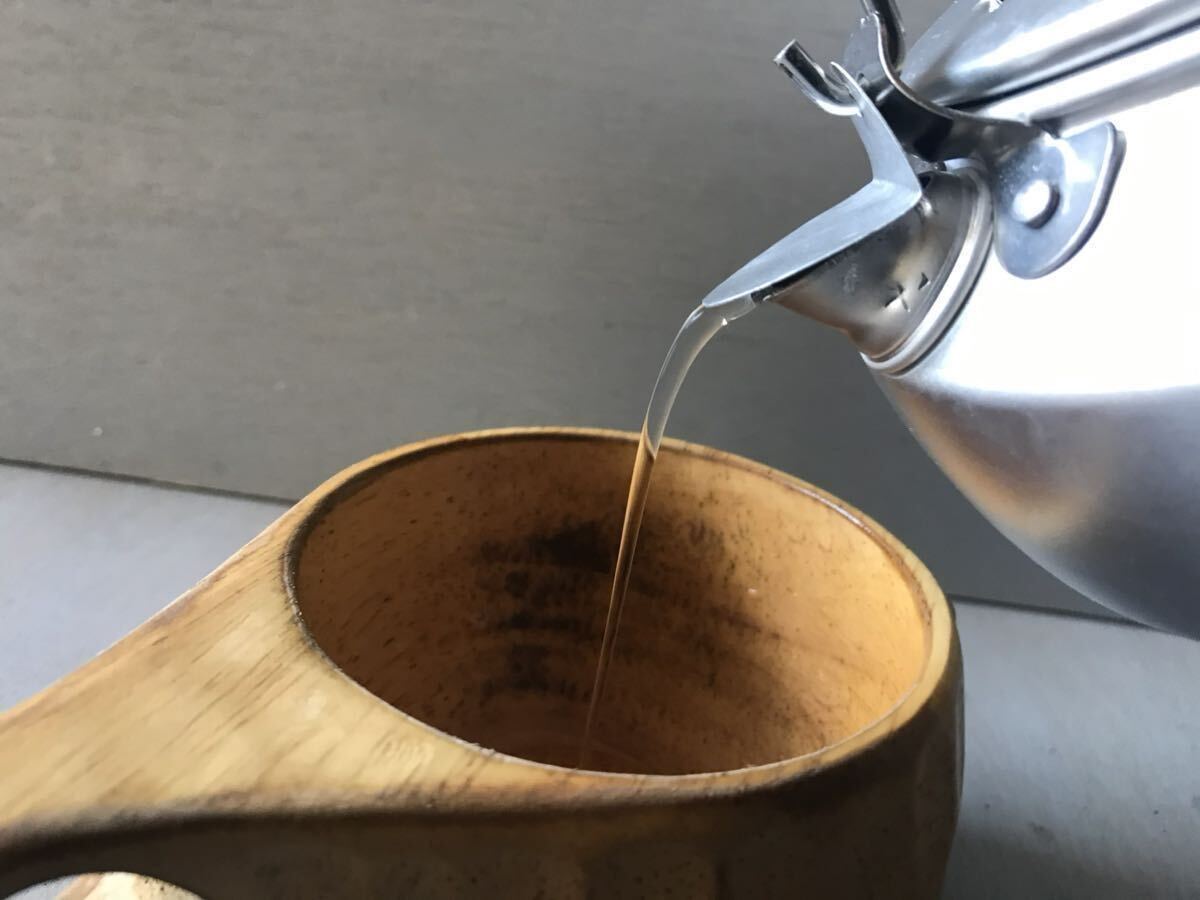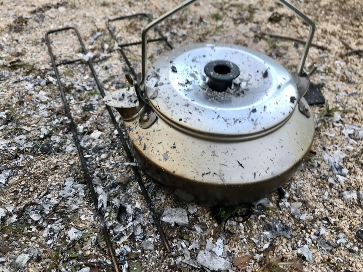 ※蓋は取手の先にシンプルに引っ掛けるだけです、ケトルを90度以上に極端に傾けると口蓋が落ちるのでご注意下さい。最後の約10mlは90度以上に傾けないと水が出ないため、その際は口蓋が落ちないように指で添えるか、外してからご使用下さい。また、焚火使用の際、裏側に煤がたまると水が垂れる場合があります。その場合には煤を拭き取ってご使用下さい。
