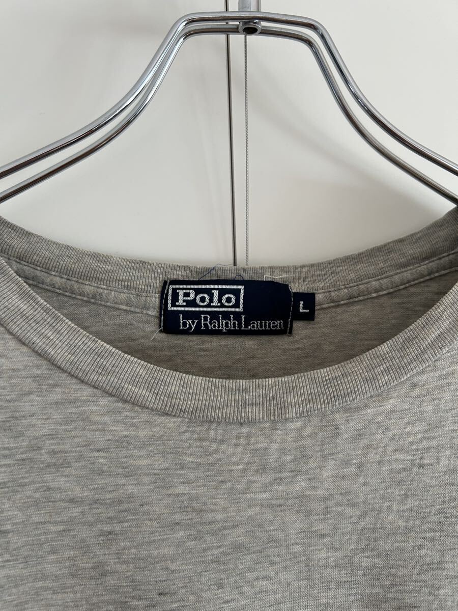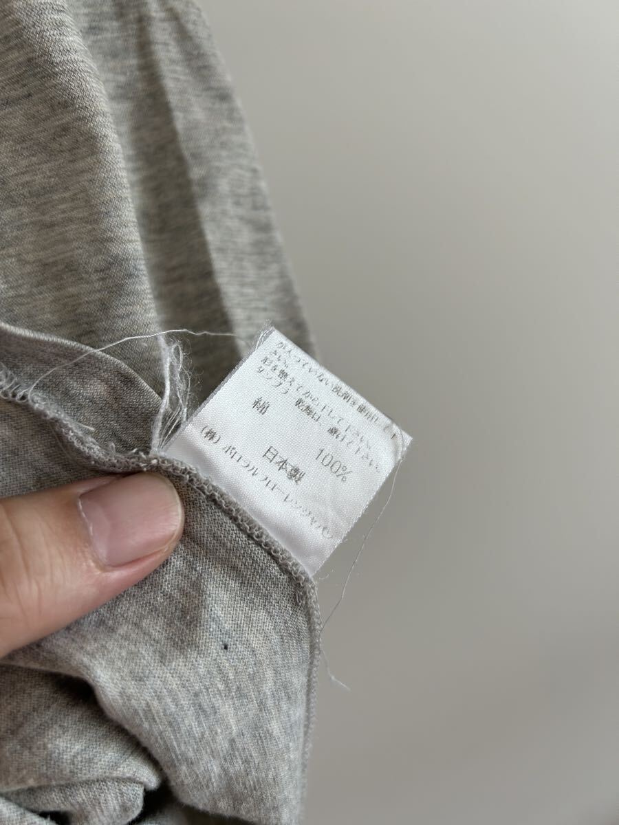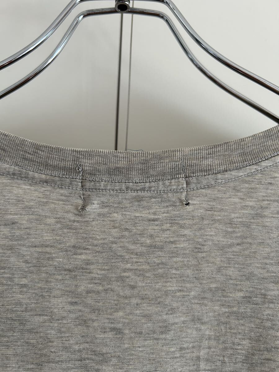 90年代の空気を纏ったシンプルな一枚。杢グレーのボディに胸ポケットと小さなポニー刺繍。日本製ならではの質感とシングルステッチのディテールが魅力です。