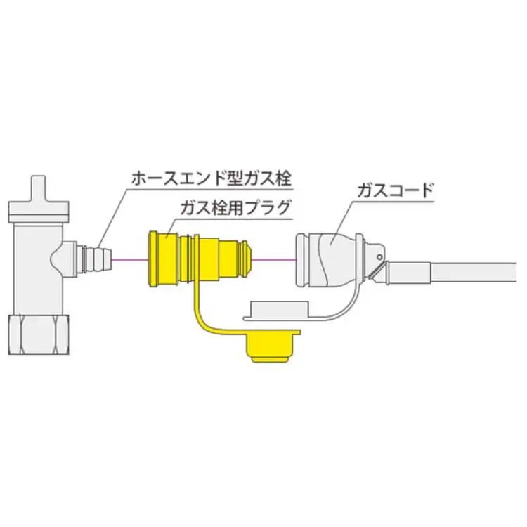 ◎ガス栓の取出し口がホースエンド型でも、ソケット付きガスコードが使用できるようになります。