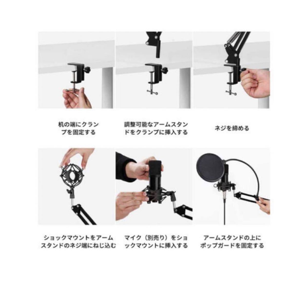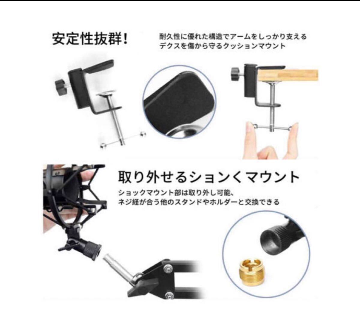 ★【高安定性&高品質なスタンド】マイクホルダーはスチール構造を採用して作られており、頑丈で耐久性があります。そして亜鉛合金ベースは厚さが5cmまでのテーブルに取り付けることができ、幅広く使えます。錆しにくく、破損しにくく、および変形しない特徴を備えております。優れた強度を与えて、安定に立てることができます。耐久性が優れて、長い時間に愛用頂けます。