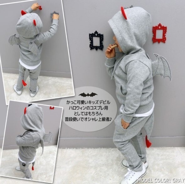 悪魔の羽と尻尾、角がついた可愛いパーカー上下セットです