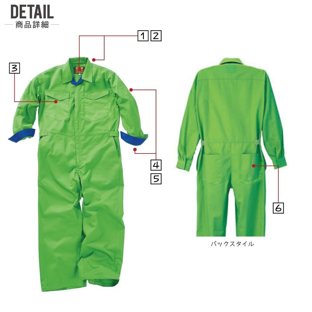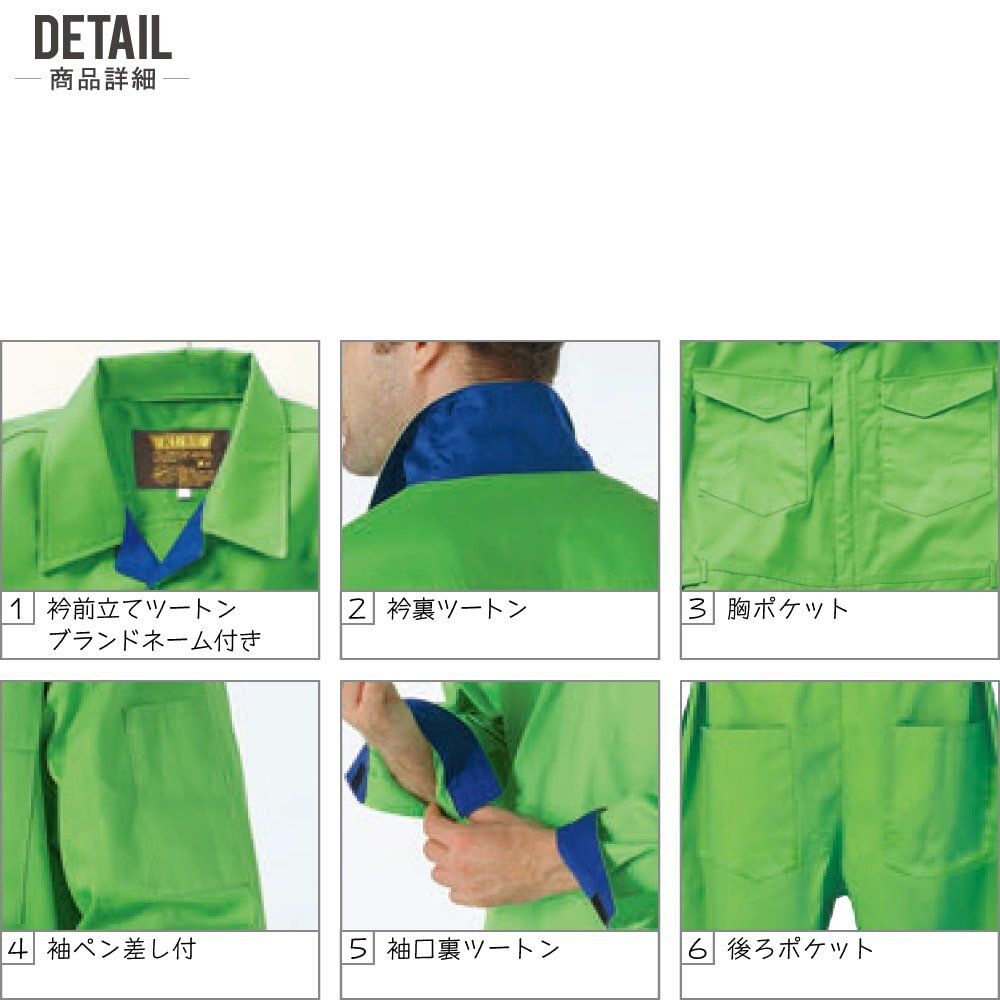 衿裏や袖口裏のツートンカラーなど配色にこだわったツナギです。
