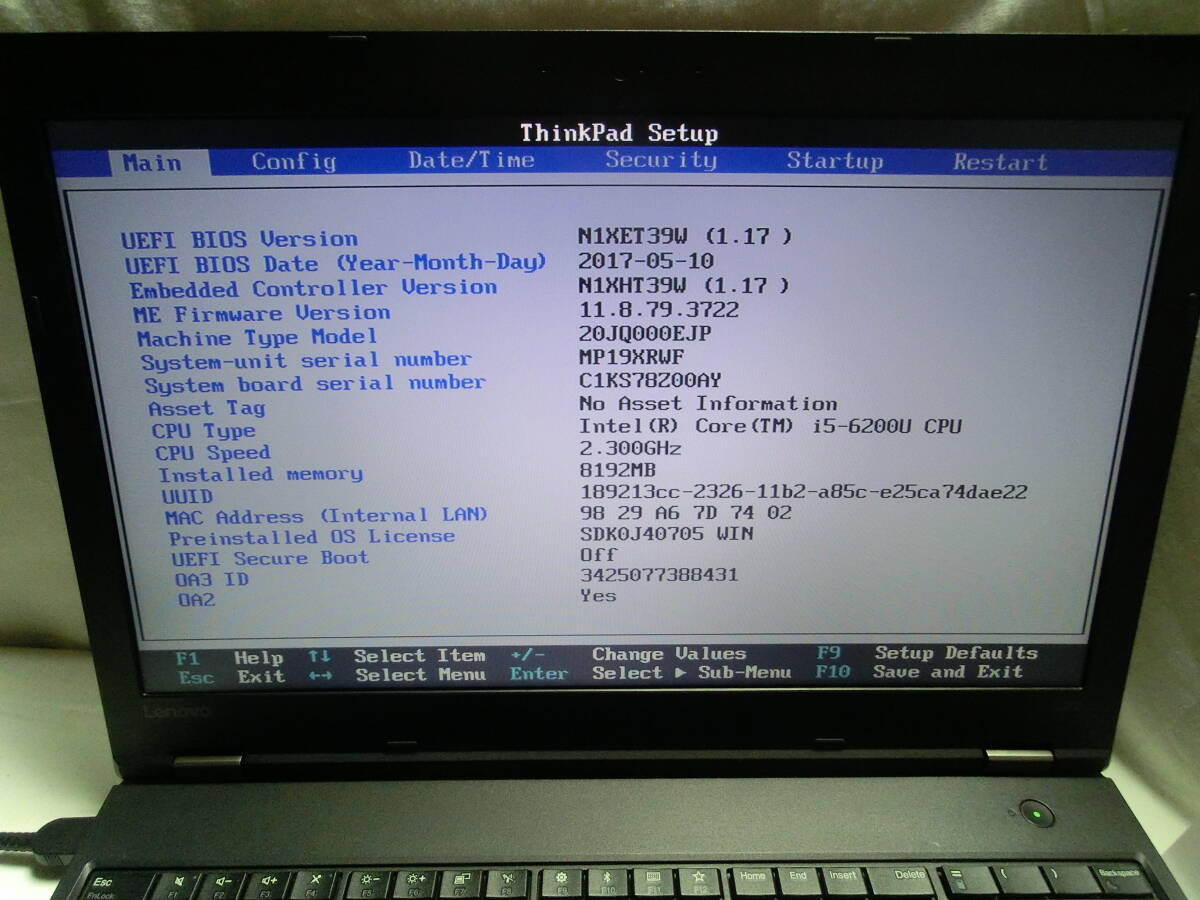 【ジャンク扱い】Lenovo ThinkPad L570 20JQ000EJP(動作確認済)/Intel Core i5-6200U/メモリ8GB/ストレージ無/管:NPC2508-794