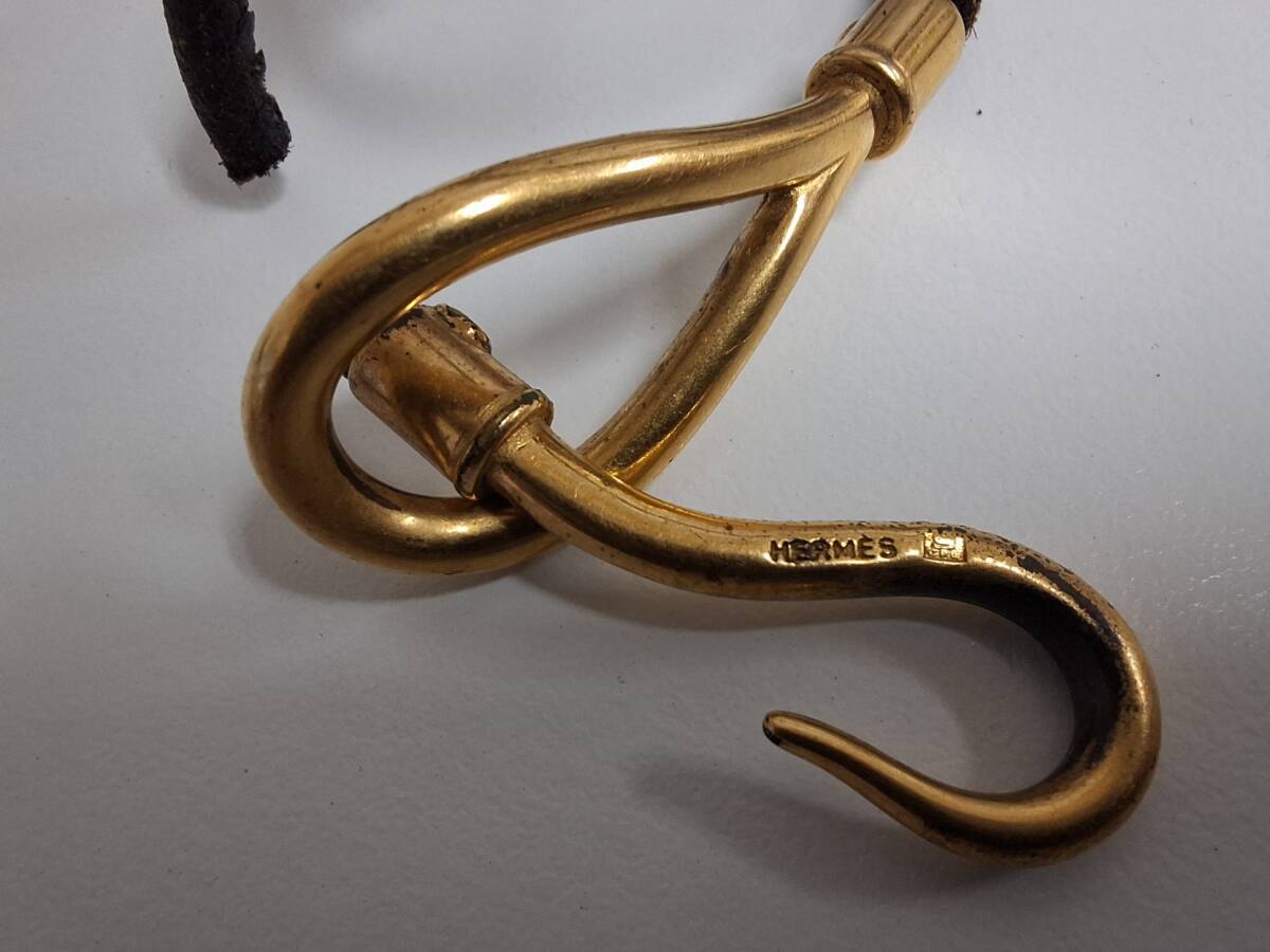 【貴重】HERMES エルメス ブレスレット ジャンボフック レザーxゴールドカラー ブラックxゴールド 2連ブレスレット Jumbo Hook 切れています