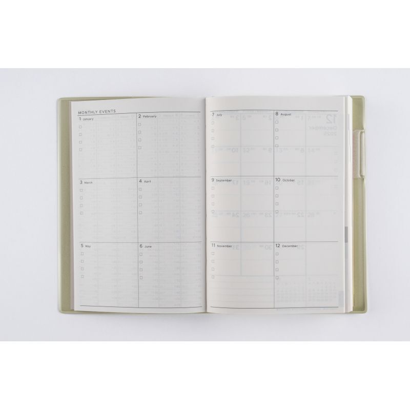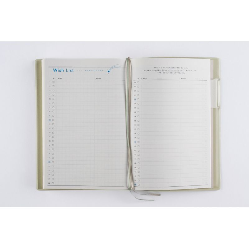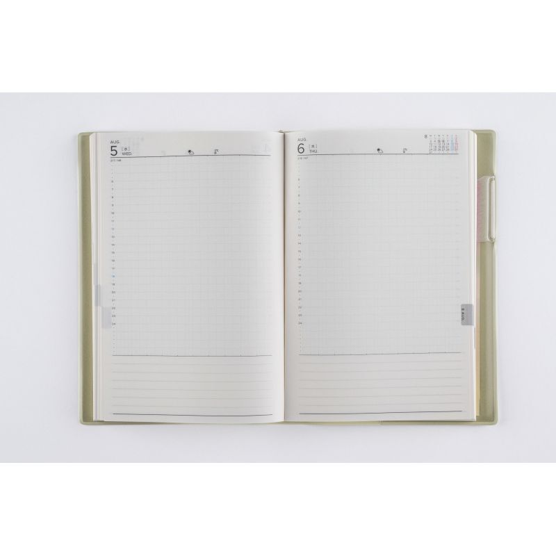 【週間予定表】デイリーページには毎日の出来事をたくさん記録できます。優しいブルーグリッドを採用していて、文章だけではなく図やイラストを描くのにも便利です。