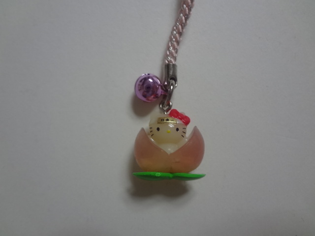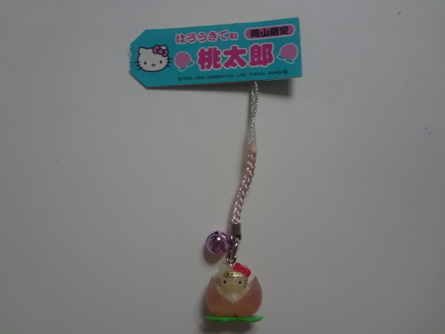 レア 岡山限定 桃から生まれた桃太郎バージョン ハローキティ ストラップ 根付け 未使用保管品