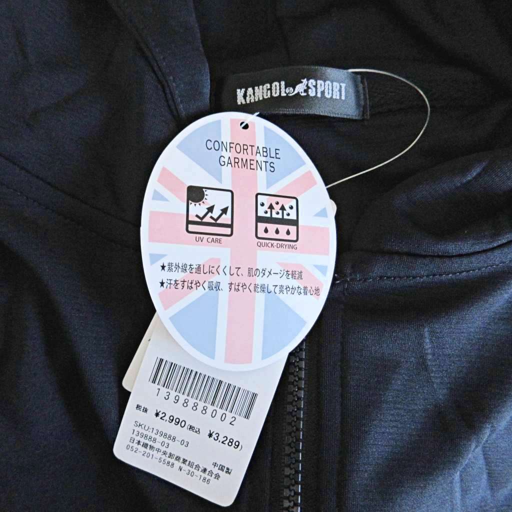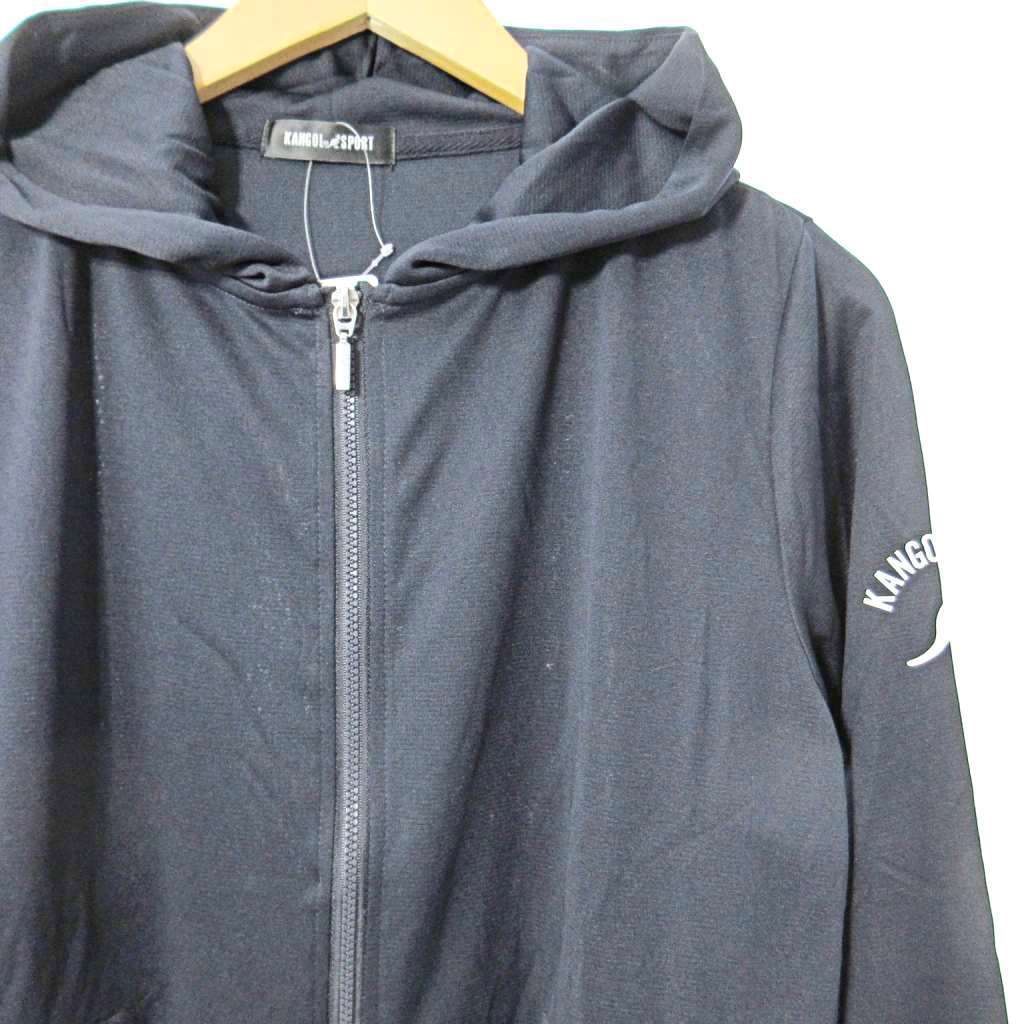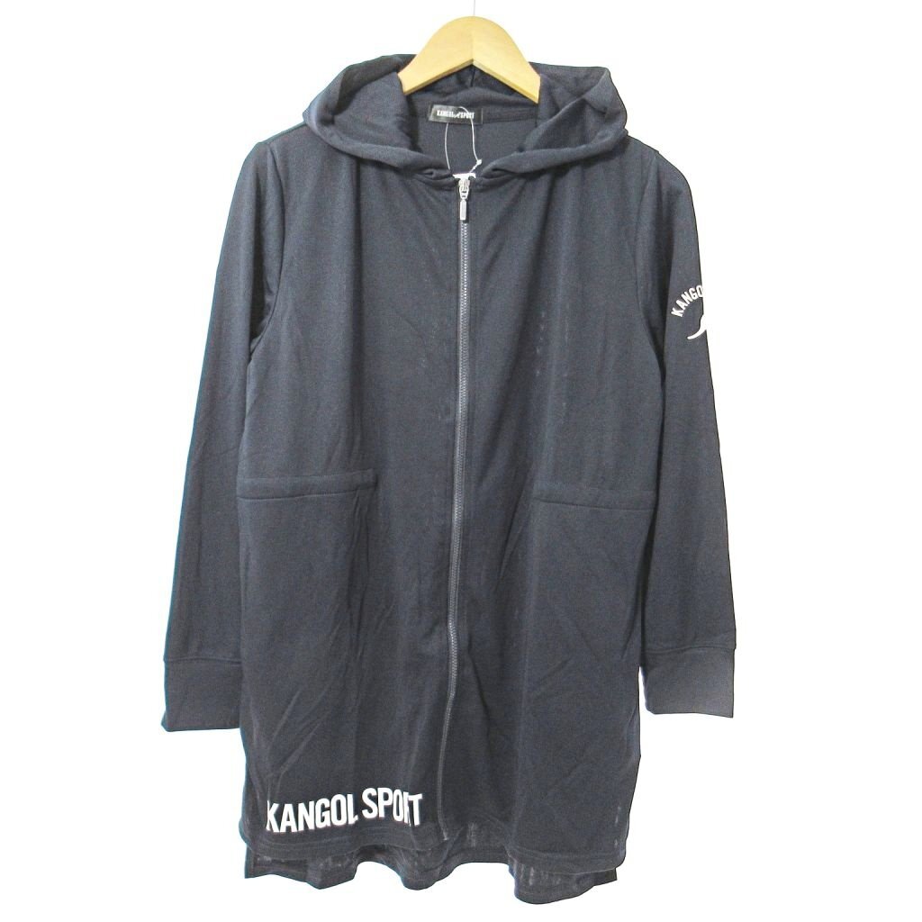 カンゴール KANGOL SPORT タグ付き ロングパーカー ジャケット 長袖 ロゴプリント フーディ L 紺 ネイビー 0825 レディース