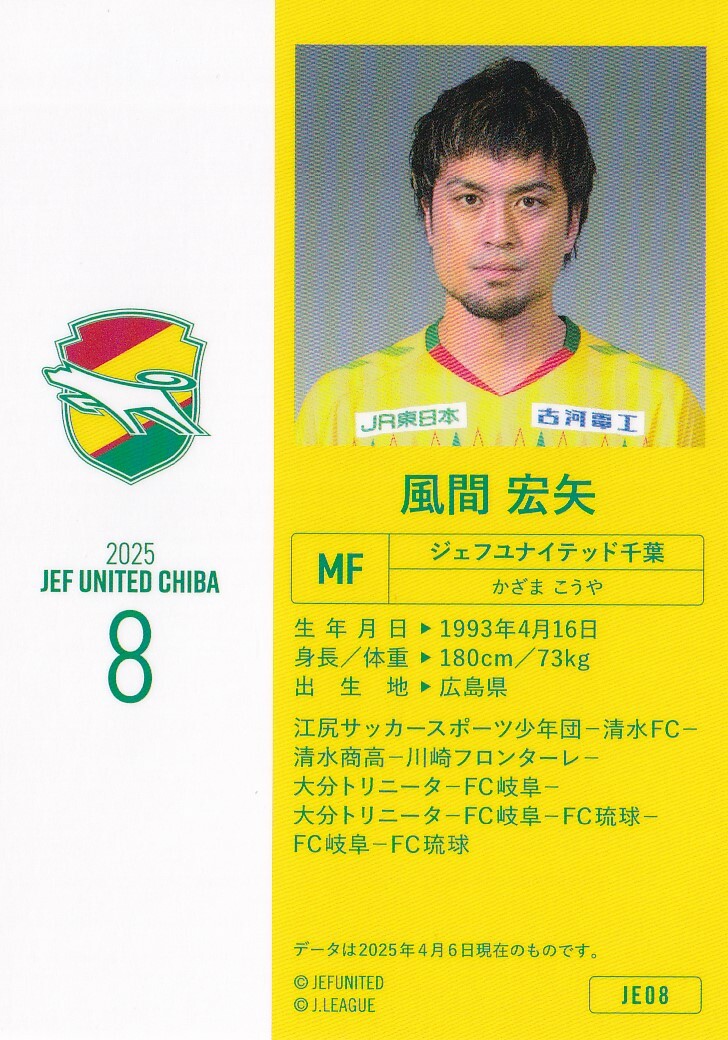 ジェフ千葉 2025 オフィシャル JE08 風間宏矢
