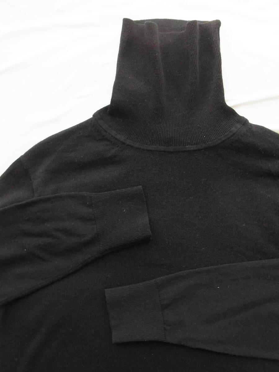 ユニクロのウール100%でハイゲージのタートルネックセーターになります。USEDで着用感と多少の毛玉は御座いますが、それ以外には特に目立ったダメージ等は御座いません。