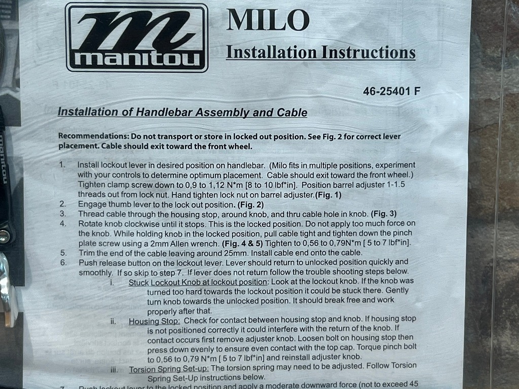 商品説明manitouのフロントサスペンションをリモートでロックアウトさせるためのパーツです。サスペンションをロックさせることで、可動域を減らし、坂道などで効率的にペダリングが可能になります。