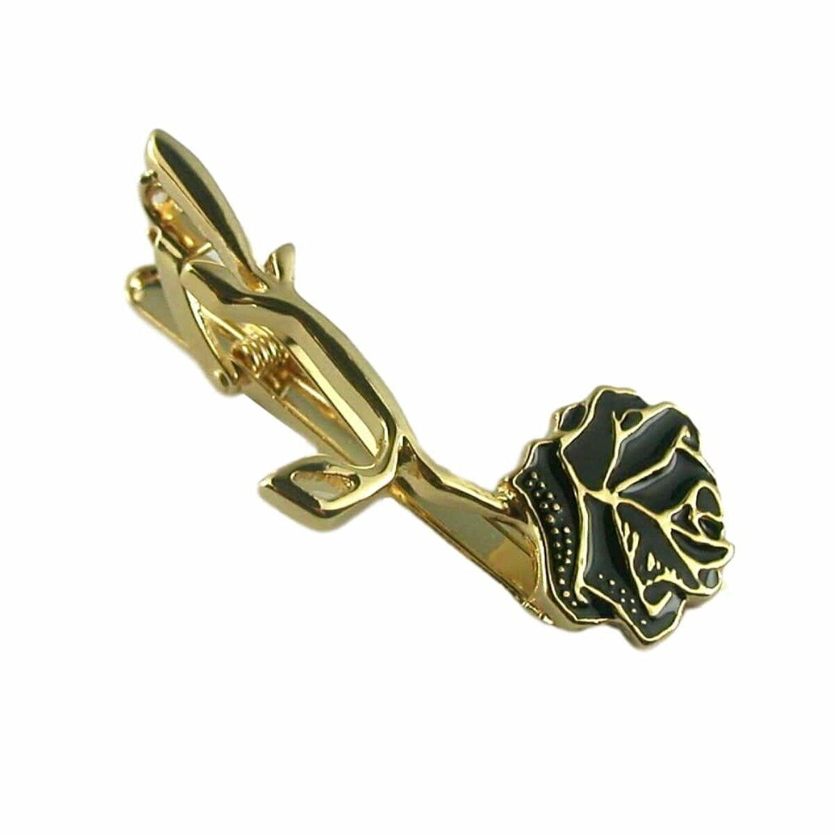 ★ネクタイピン ユニーク ばら バラ 薔薇 ローズ ROSE 花 ゴールド&ブラック A 【送料無料】★