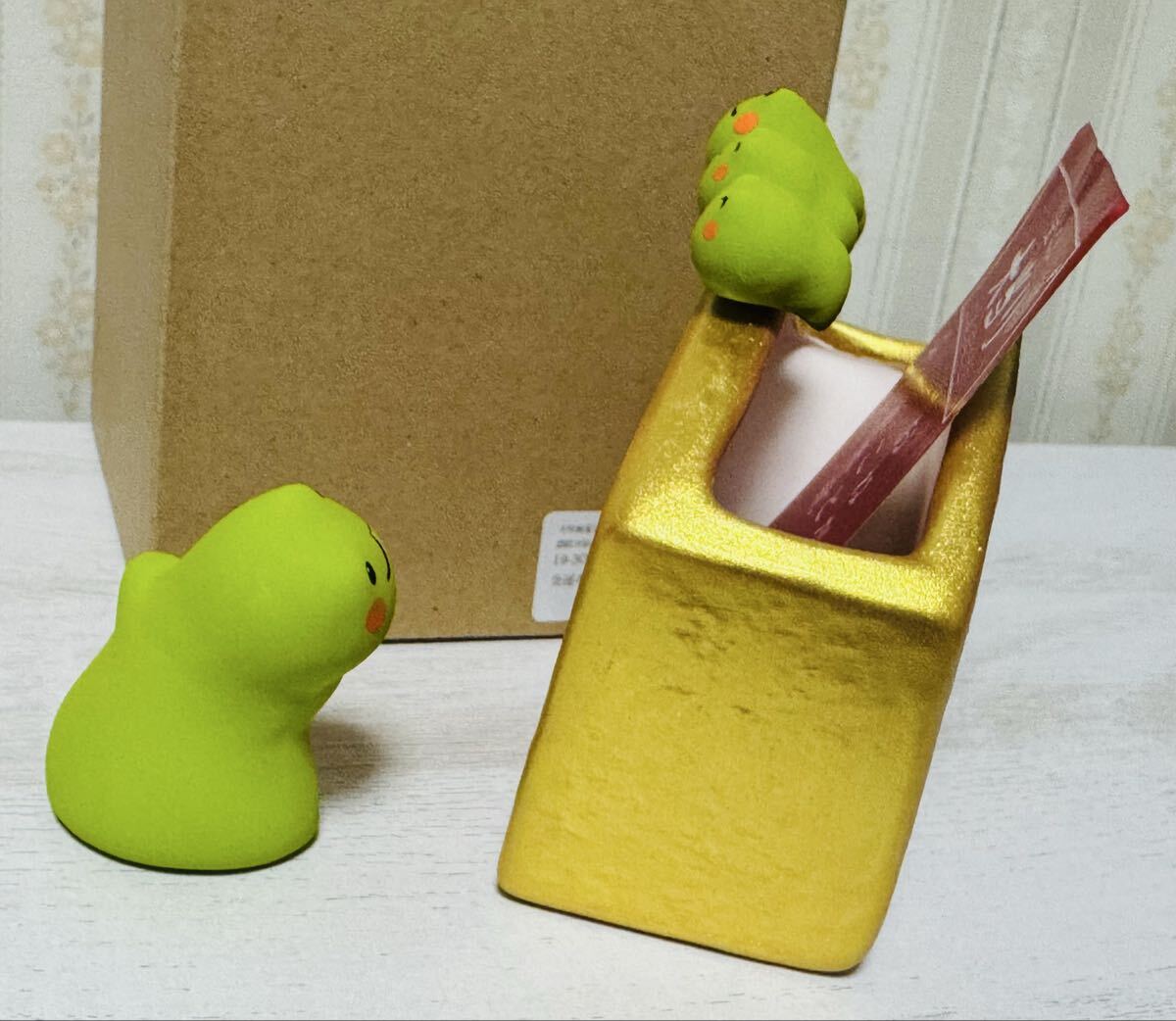 そこで、この「お金がカエル」蛙の宝くじ入れはいかがでしょう。