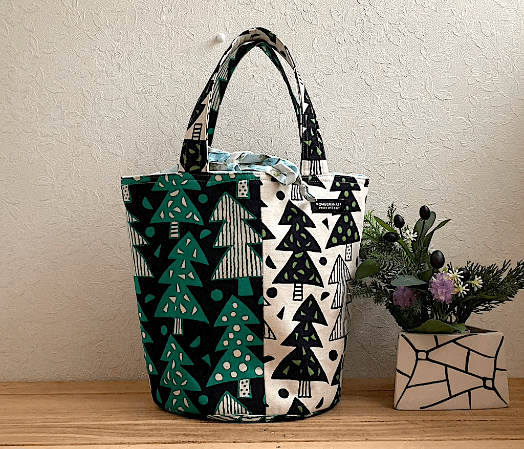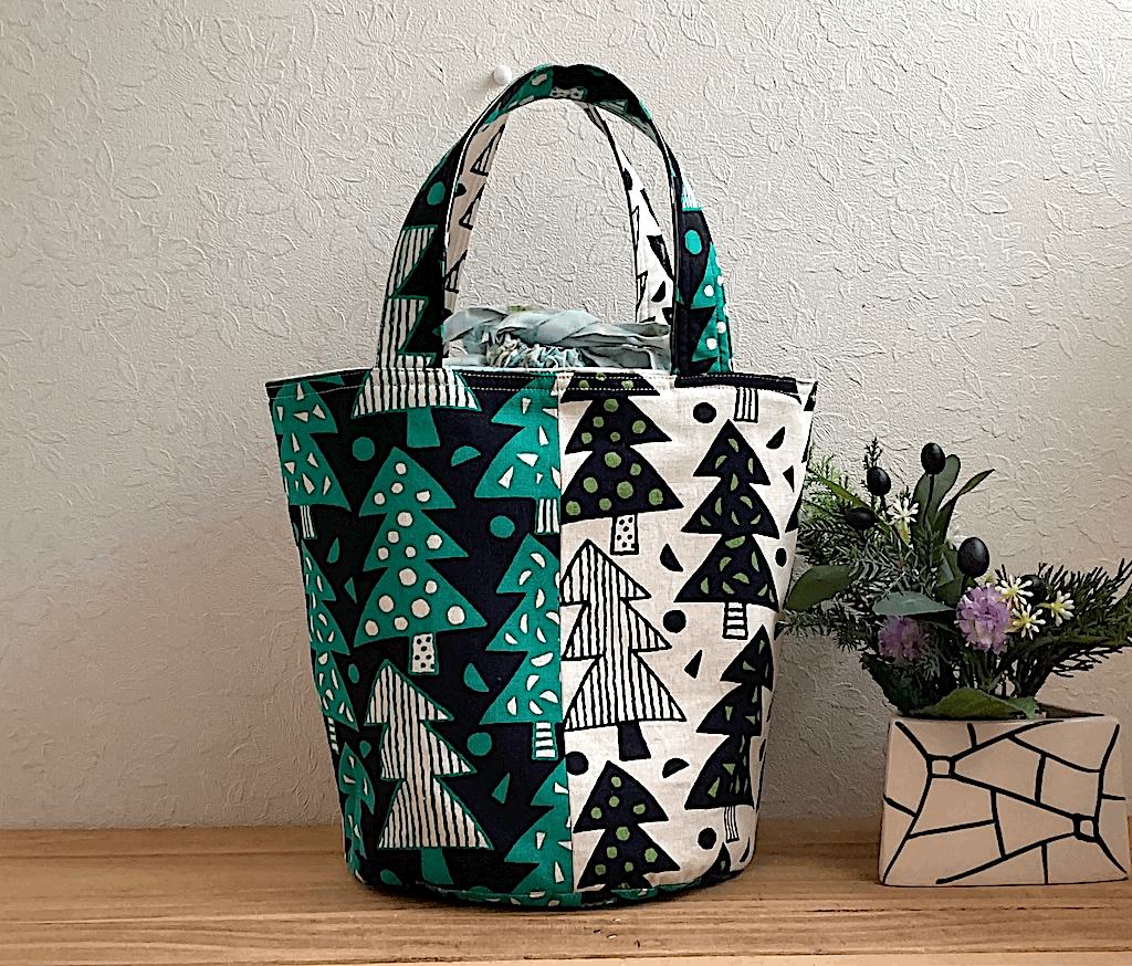 ★丸底 バケツ型 巾着トートバッグ「ツリー 木」※表布に厚手接着芯貼付