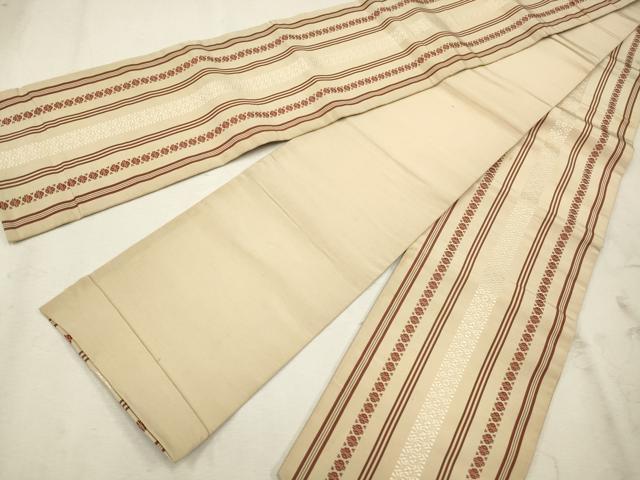 | 【正絹】 詳細に関しましては、画像をご確認ください。 本場筑前博多織は、 福岡県福岡市博多区やその周辺で生産される絹織物です。 仏具のひとつである独鈷、華皿を基にした幾何学模様が織られています。 江戸時代に筑前藩主だった黒田長政が幕府への献上品にしたことから、 博多献上、献上博多とも呼ばれます。 横畝が際立って見える経畝織りという織りになっています。 30〜60本の細い経糸を使うため、こしやはりがあり、 地合が硬く、光沢感があります。 きちんと締まり、くずれにくい、締めやすい帯といわれています。 大変上質な逸品になります。 お安く出品致しますので、是非この機会にいかがでしょうか?
