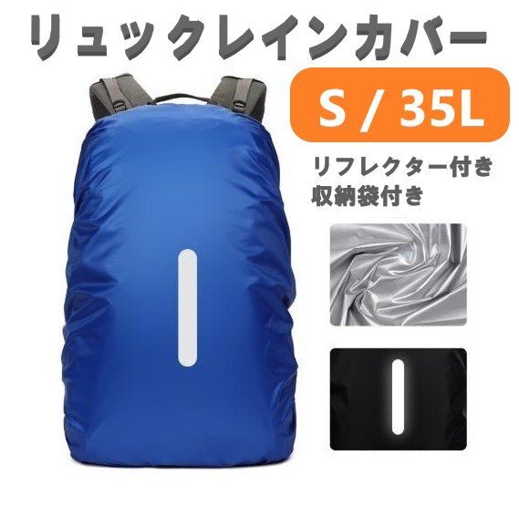 レインカバー ブルー Sサイズ 35L 落下防止バンド付き 収納ポーチ付き リュックカバー ザックカバー 防水 雨 雨用 バッグ