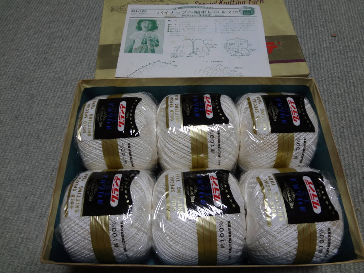 手芸用品 オリムパスエミーグランデレース糸(1) 色番801 6玉セット 作例リーフレット付き 未使用品