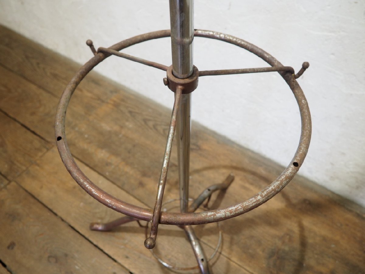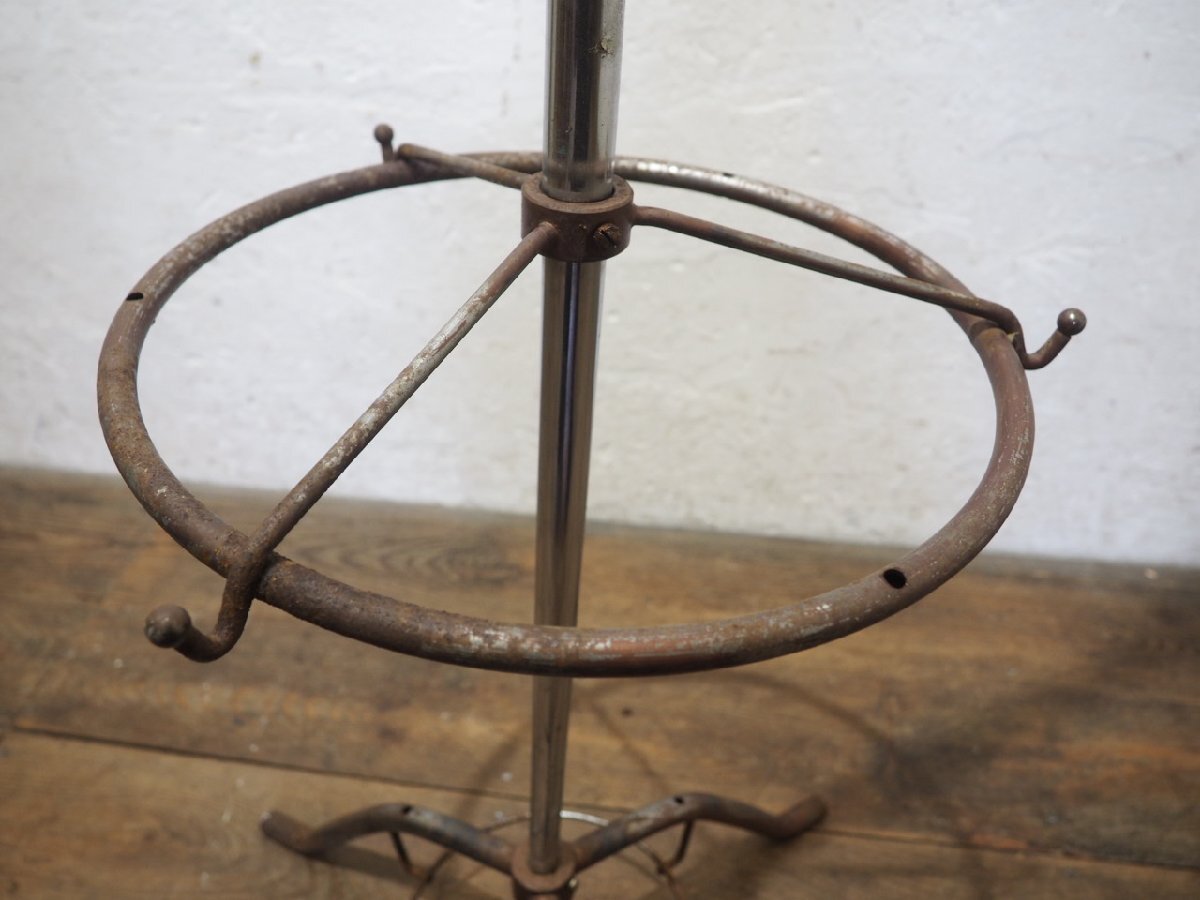 タV0035◆H174cm◆ヴィンテージ◆シャビーな古い鉄のポールハンガースタンド◆工業系 アイアン フック コート 帽子掛け レトロN笹4