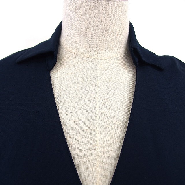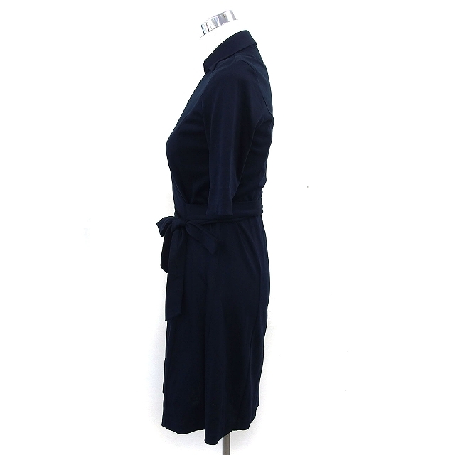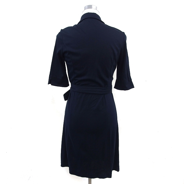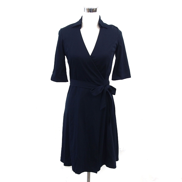 ブルックスブラザーズ BROOKS BROTHERS カシュクール ワンピース フレア ひざ丈 スキッパーカラー リボン 五分袖 XXS 紺 ネイビー