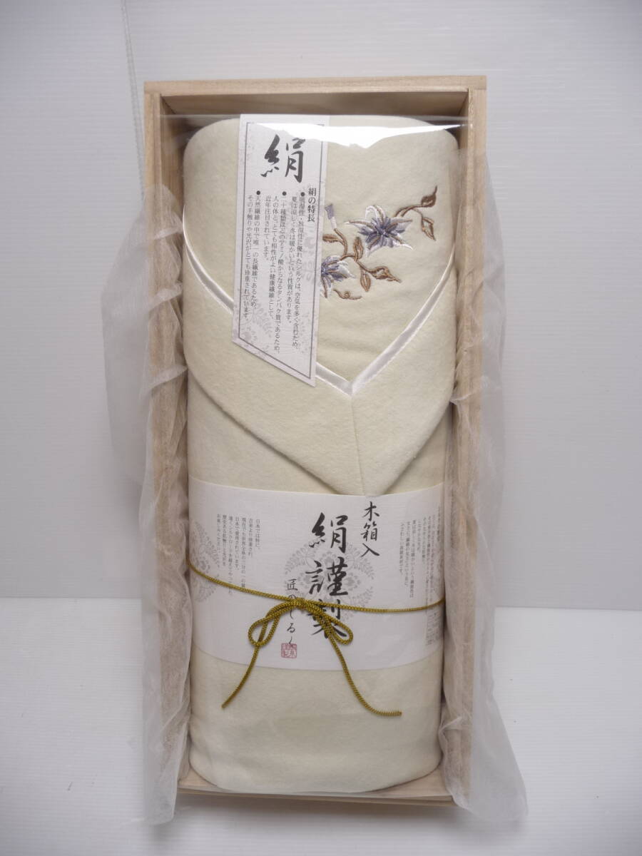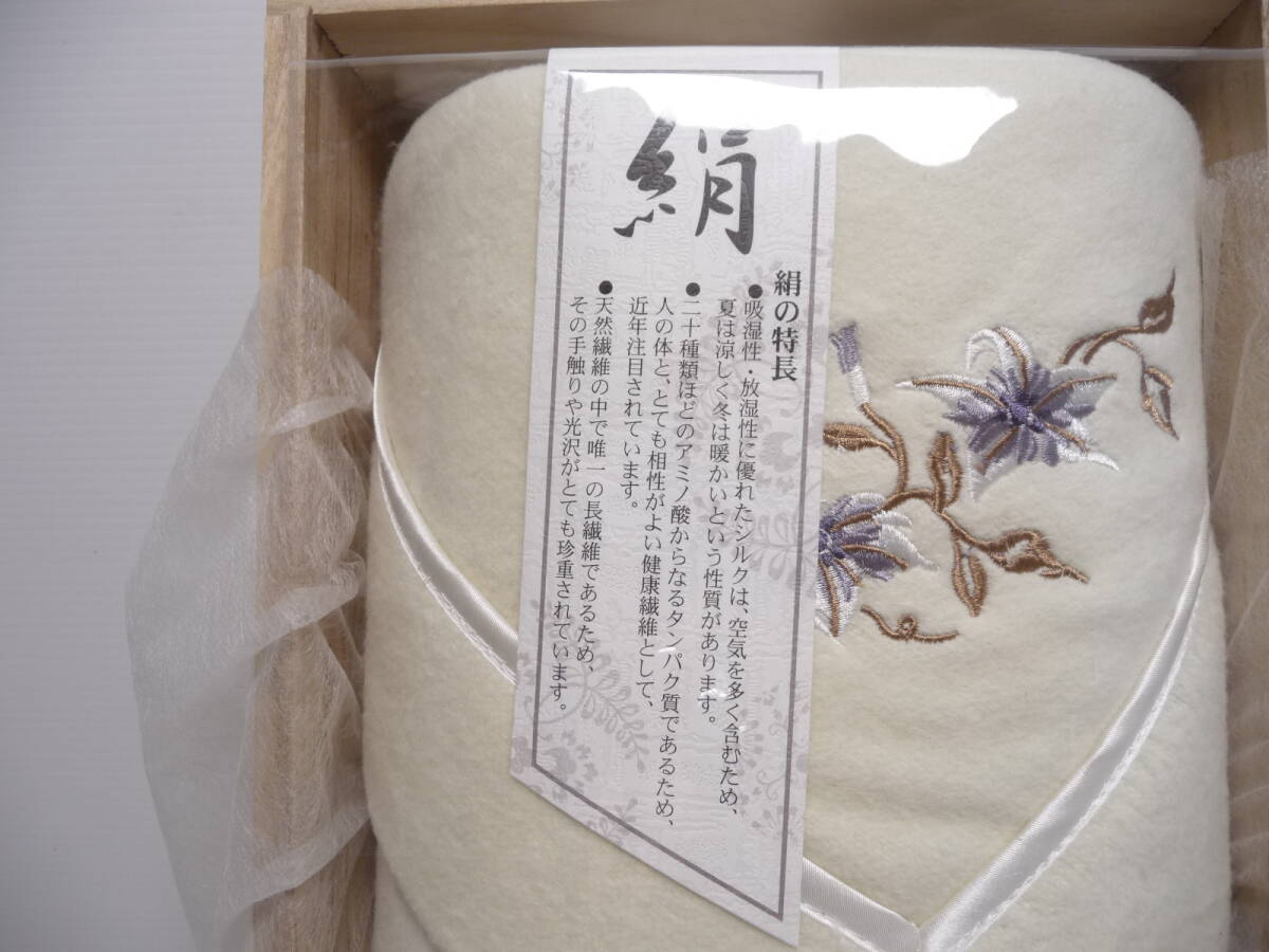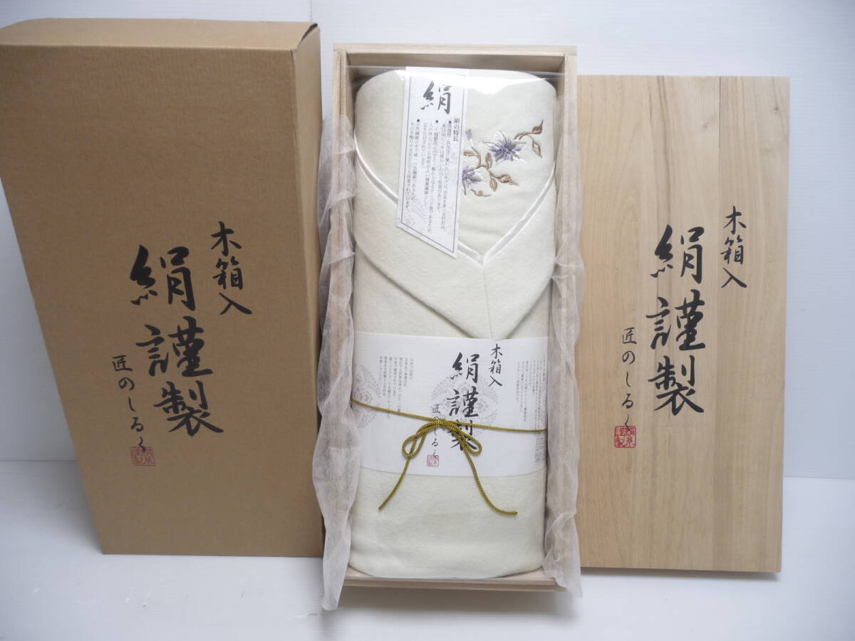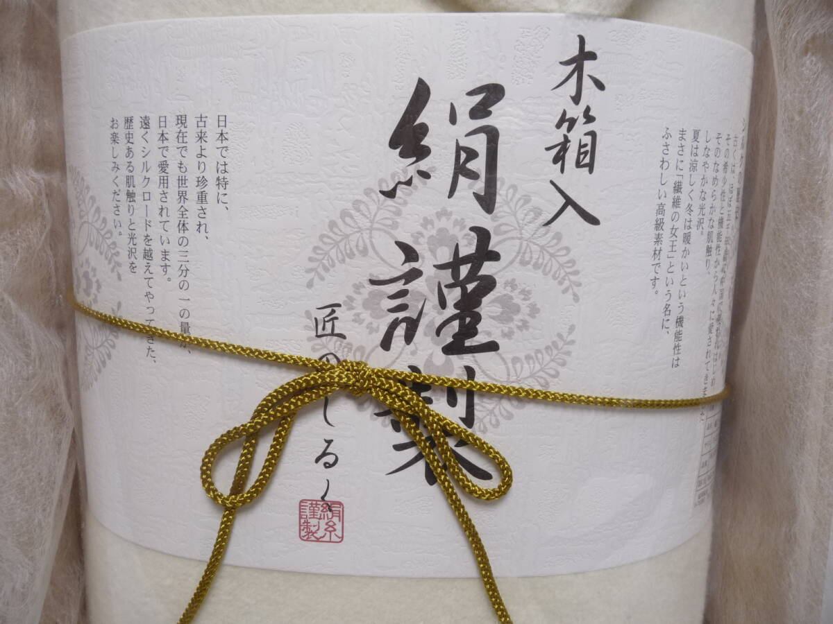 ■未使用 絹謹製 匠のしるし SK-15022 毛布 木箱入 幅広ヘムシルク混綿毛布 140cmX200cm■