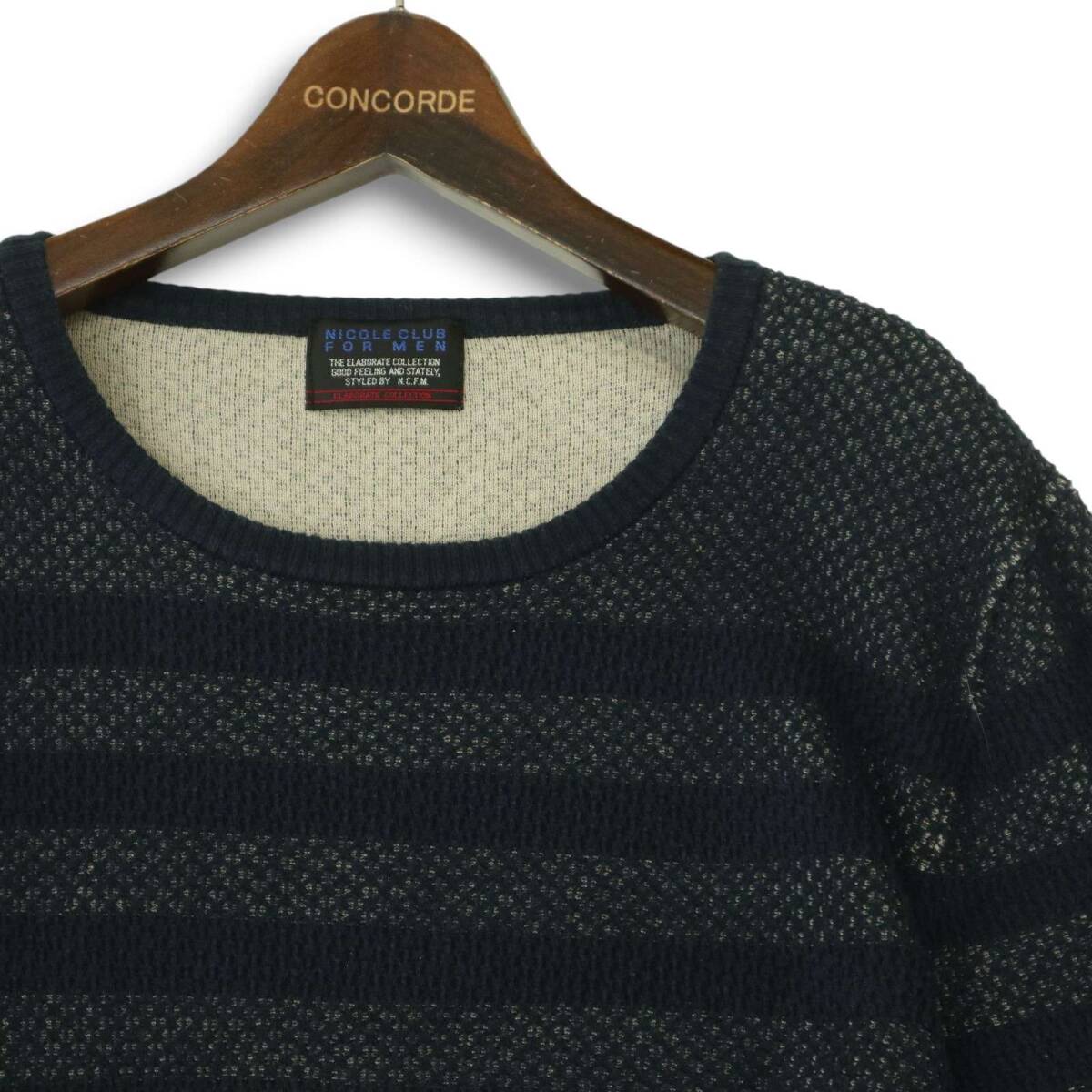 NICOLE CLUB FOR MEN ニコルクラブ フォーメン 秋冬 ボーダー★ ニット セーター Sz.48 メンズ 紺 ネイビー