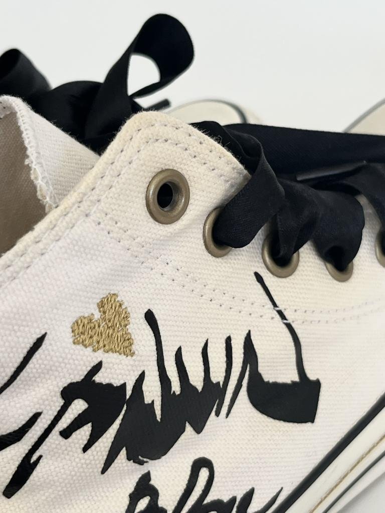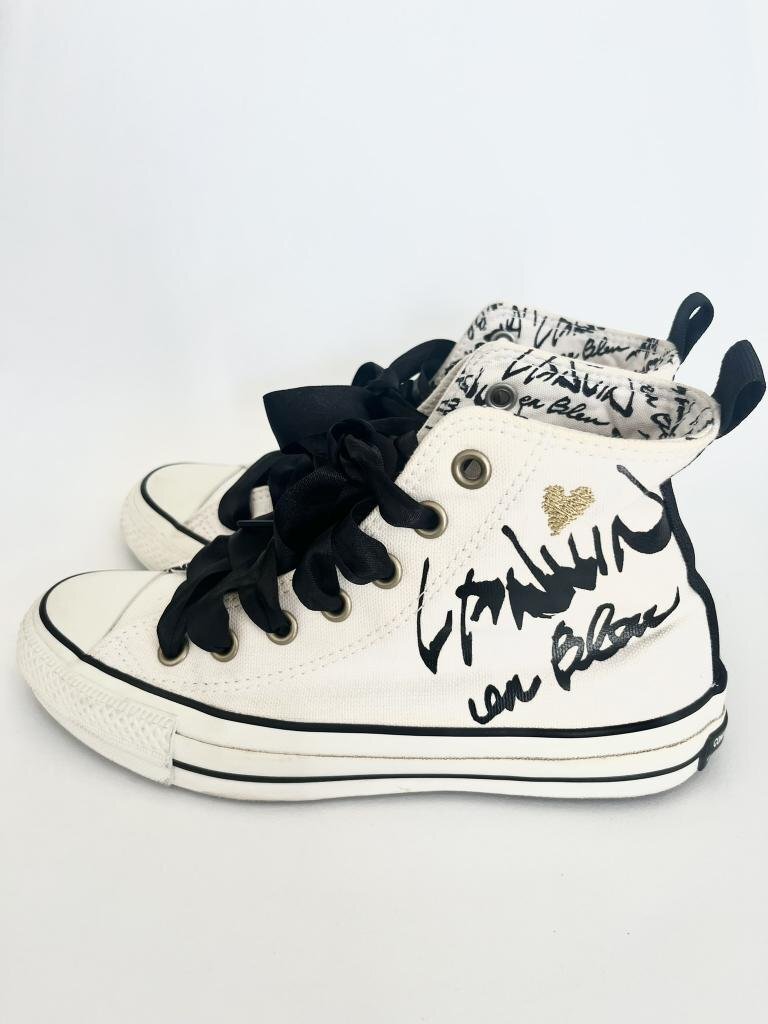 【送料込】CONVERSE コンバース × ランバンオンブルー 「1CL166」オールスター 23.5cm ヒール3 オフホワイト×ブラック くつ 6456745