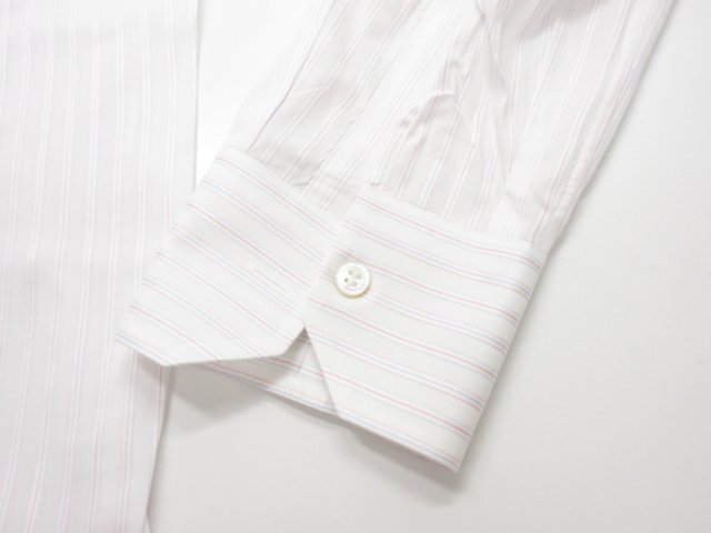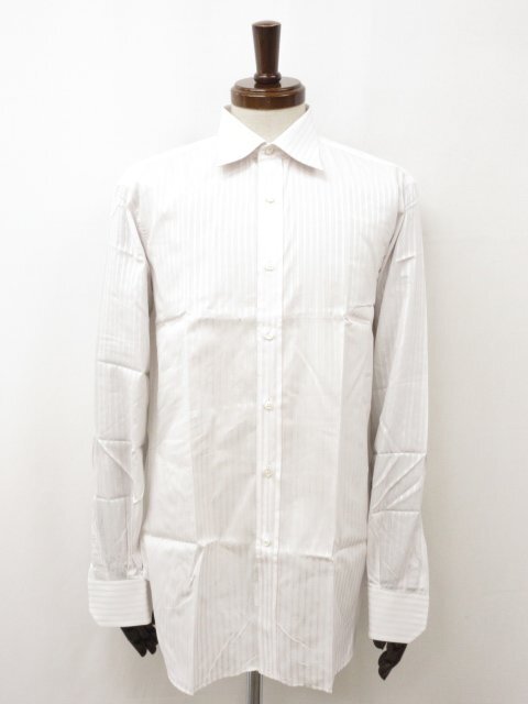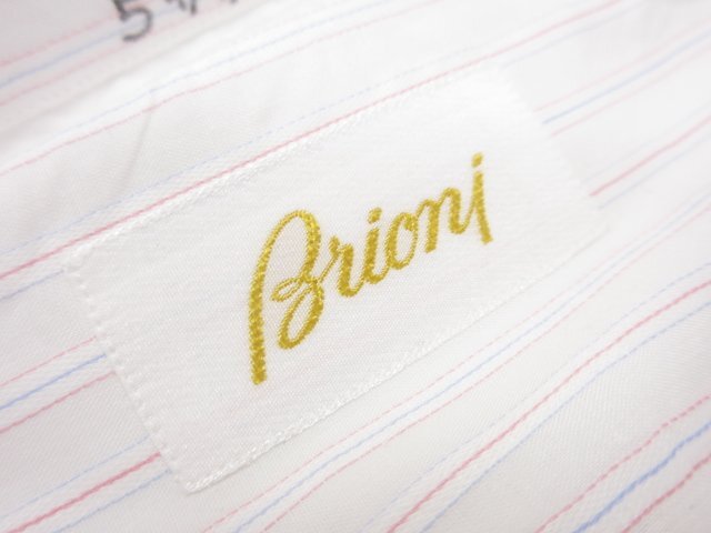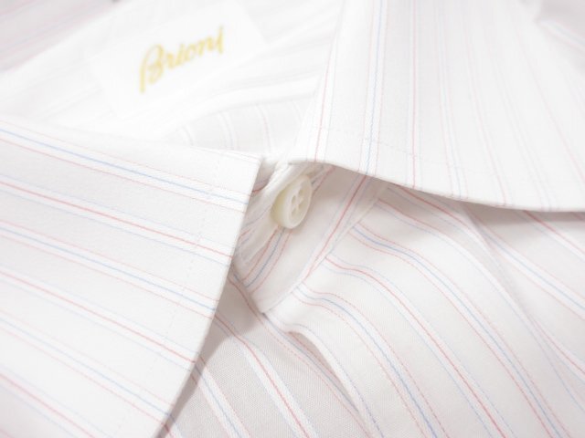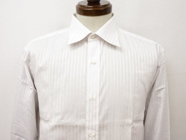 美品【ブリオーニ Brioni】コットン100% セミワイドカラー ストライプ柄 長袖シャツ (メンズ) size41 白系 イタリア製◇35MK5956◇
