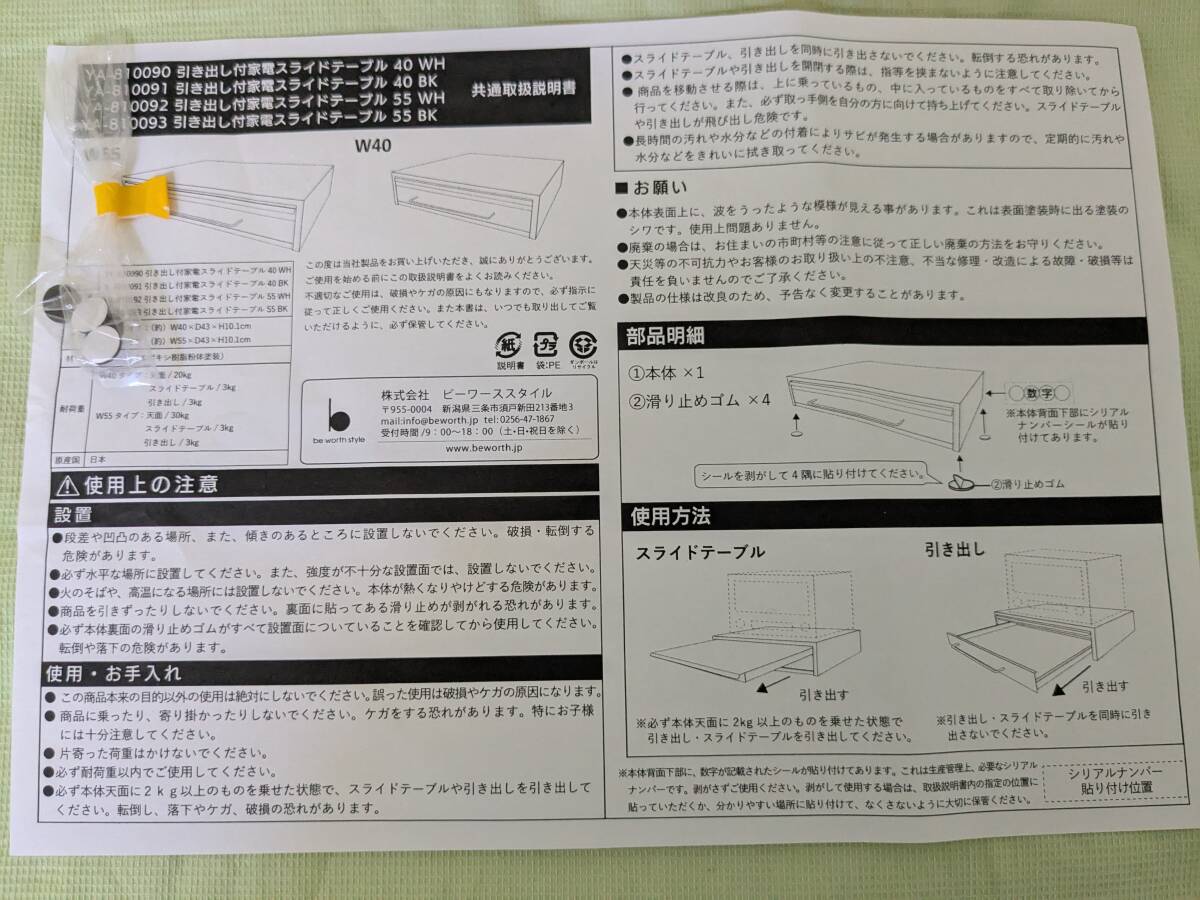 【送料無料】【訳あり(左の側面に凹み難あり)】【展示品】ビーワーススタイル 引き出し付家電スライドテーブル40WH   幅40cm