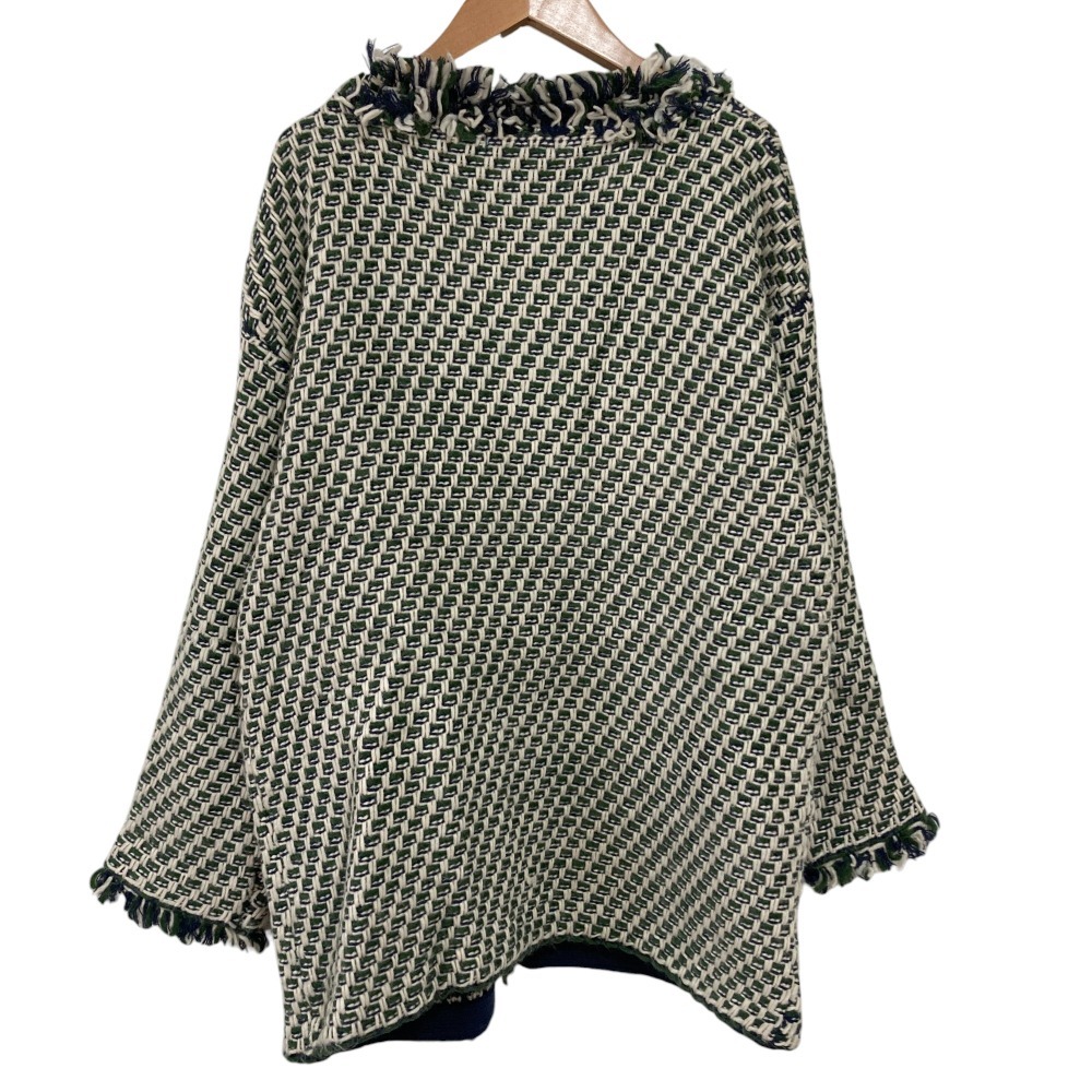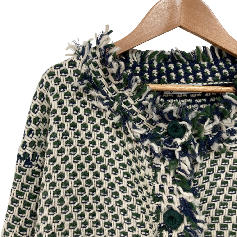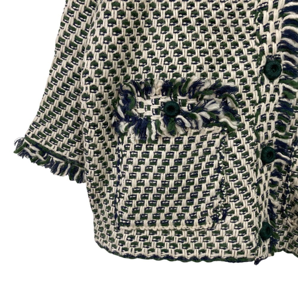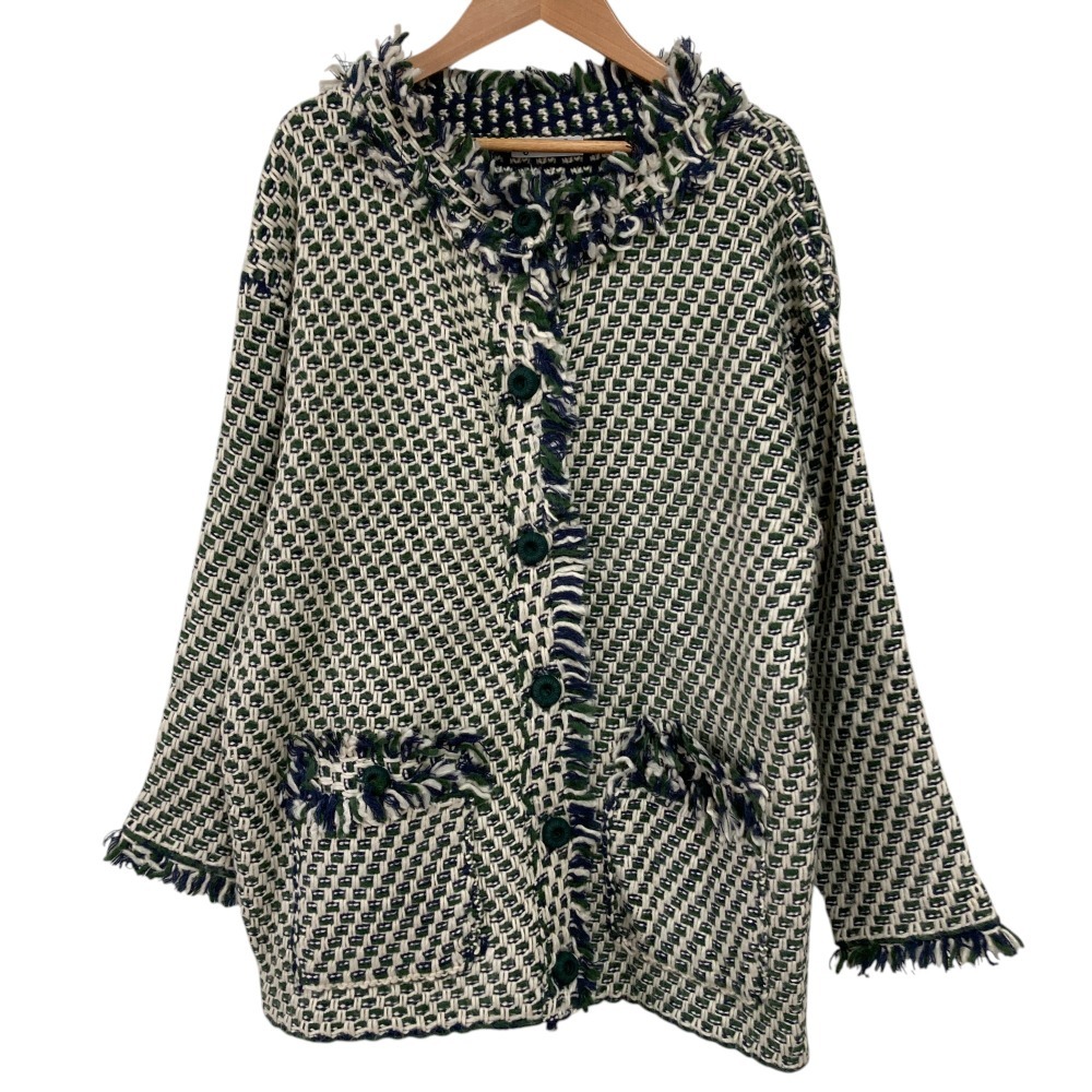 美品 Jocomomola ホコモモラ シビラ Pluma フリンジ ノーカラーニットアウター ジャケット カーディガン GJSAV01270 40 グリーン