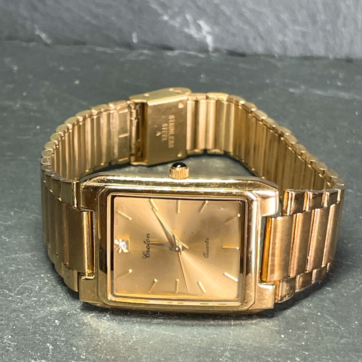 美品 CROTON クロトン RT-128M 腕時計 アナログ クオーツ 3針 スクエア メタルバンド ゴールド ステンレス 新品電池交換済み 動作確認済み