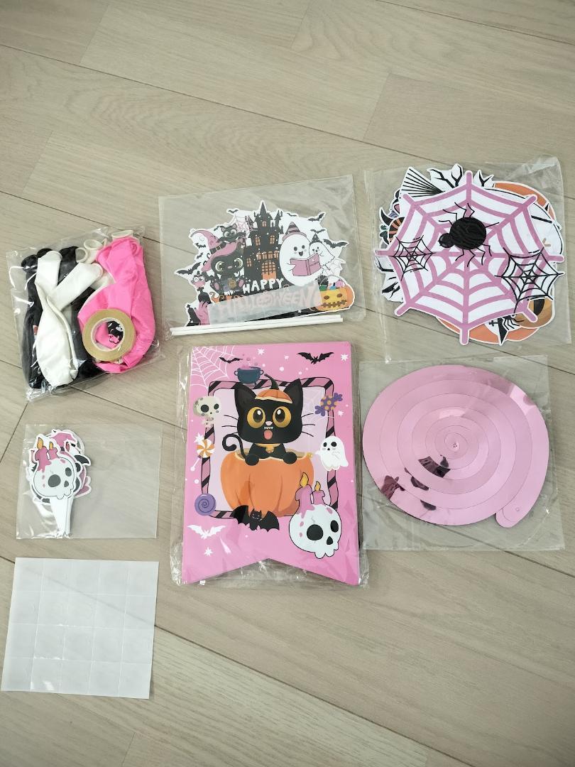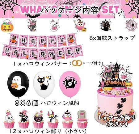 - セット内容: ハロウィンバナー、風船、カップケーキトッパー、ケーキトッパー