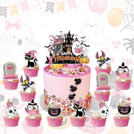 - ケーキデザイン: ピンクのケーキ、ハロウィンテーマ