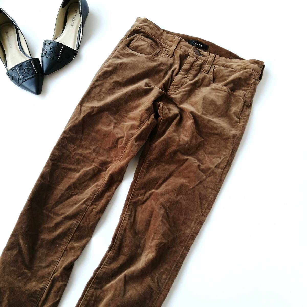 【コンディション】 多少の使用感はございますが 他は 目立った汚れ、傷などございませんので まだまだ使用できます♪ ◎中古品の為、神経質な方はご遠慮下さい。 ◎検品はしておりますが、見落としがある場合がございますのでご了承下さい。 【実寸サイズ】(単位:cm) ウエスト・ヒップ・股下・また上・わたり幅・裾幅 70・82・69・21・23・14 |