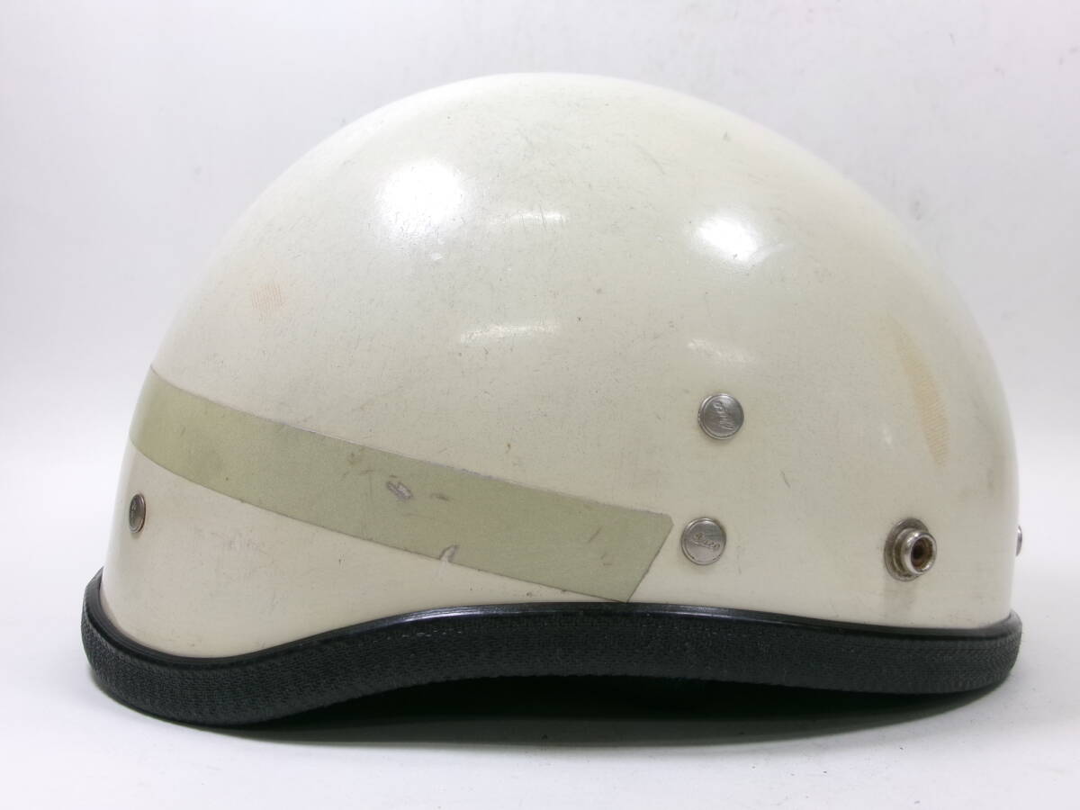 ■外装状態: 傷はありますが、全体的に艶もありいい雰囲気出ています。 ■内装状態: 新しい生地&スポンジでリペア済みなのですぐに使用可能です。 ■サイズ: 被った感じMサイズ (約58~59cm)位です。 若干の誤差はご了承下さい。 ■コメント: 1967年製 BUCO PROTECTOR ハーフヘルメットです。 内装加工済みなので目深に被れシルエットは抜群にかっこいいです。 オリペン、リベット刻印あり。 お好きな方はこの機会に是非! ※装飾用です。公道での使用はお控えください。 |
