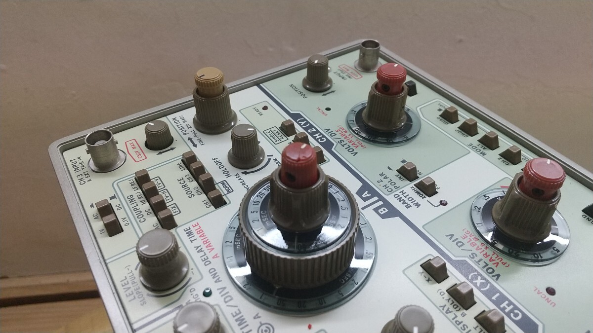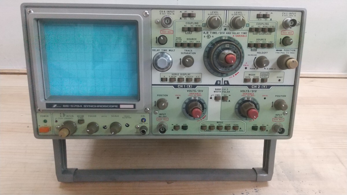 D16◆『岩通 オシロスコープ SS5784 SYNCROSCOPE 2ch-プロ―ブ2本 電源コード付き 通電確認済み ナチュラルグリーン』ツマミ欠けあり250829