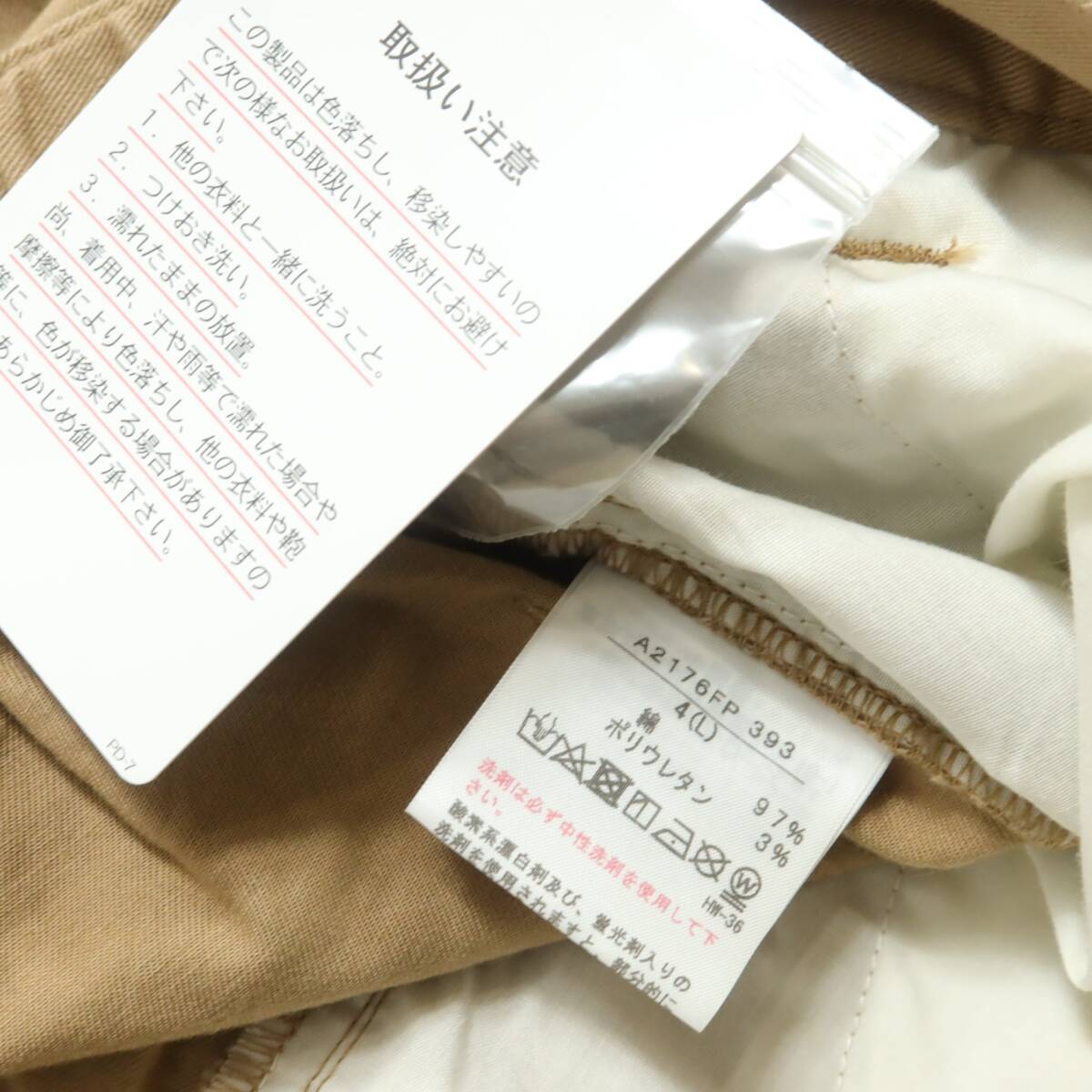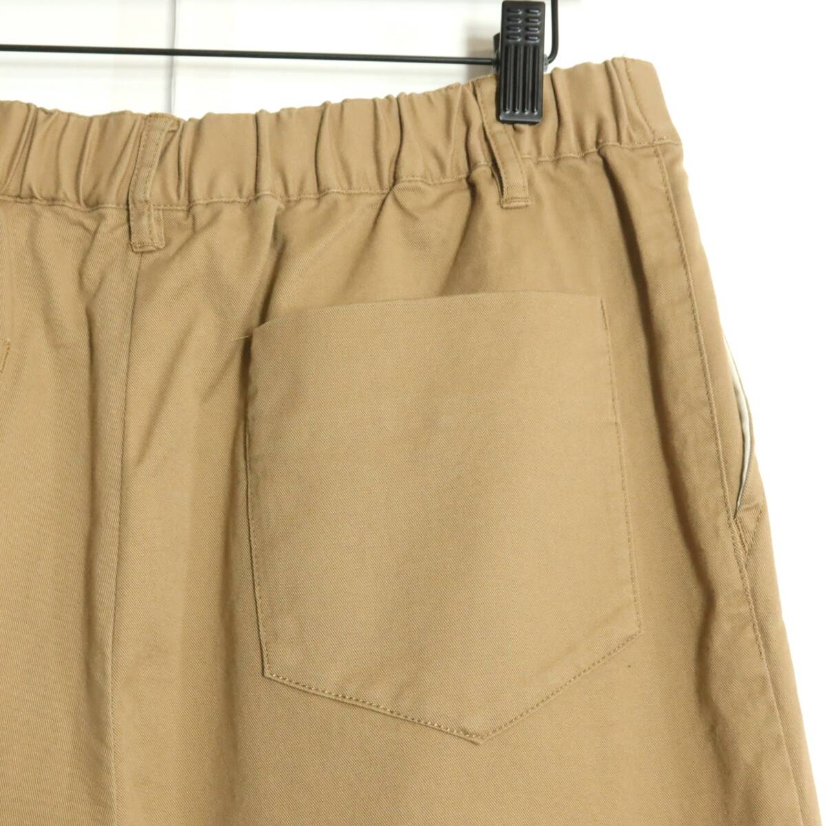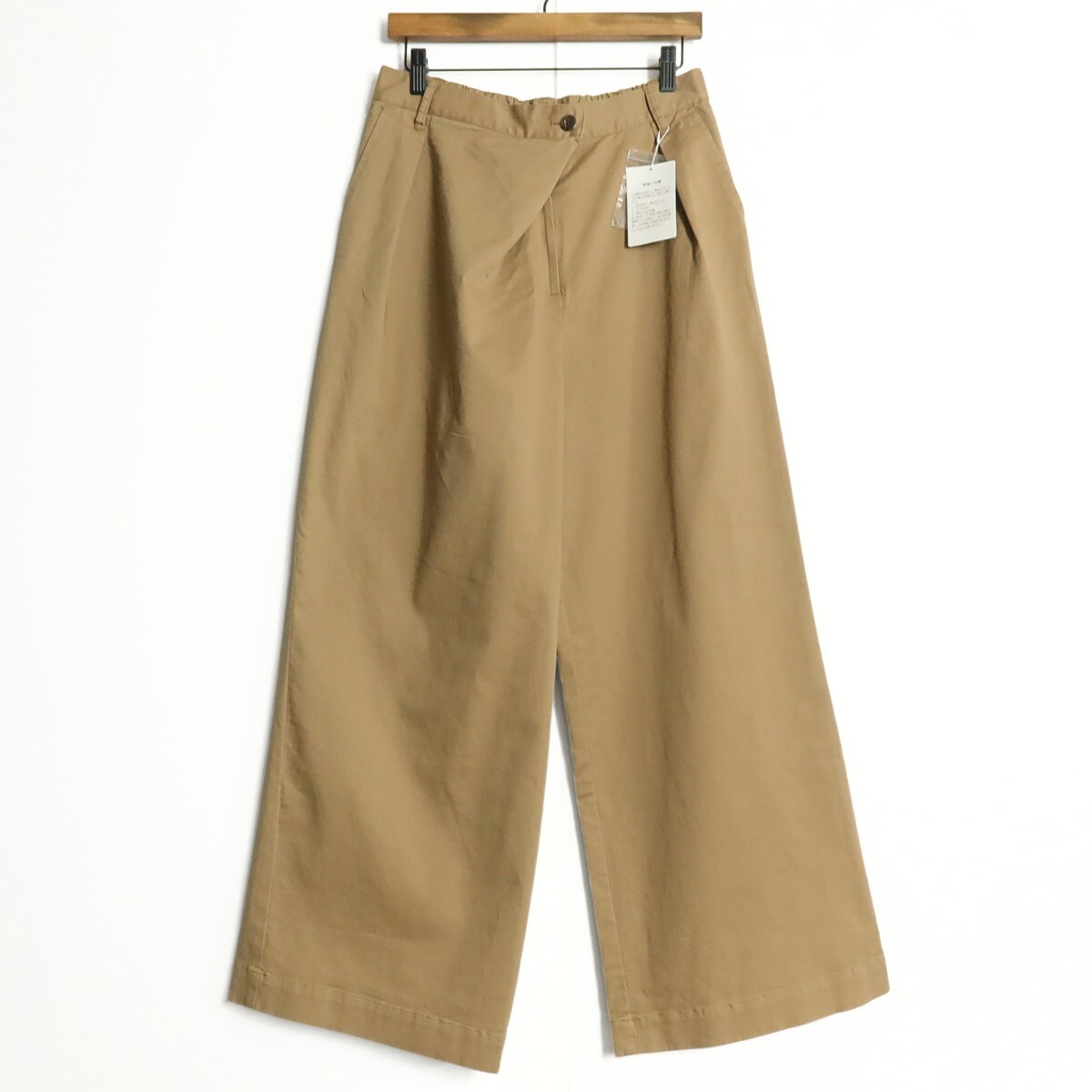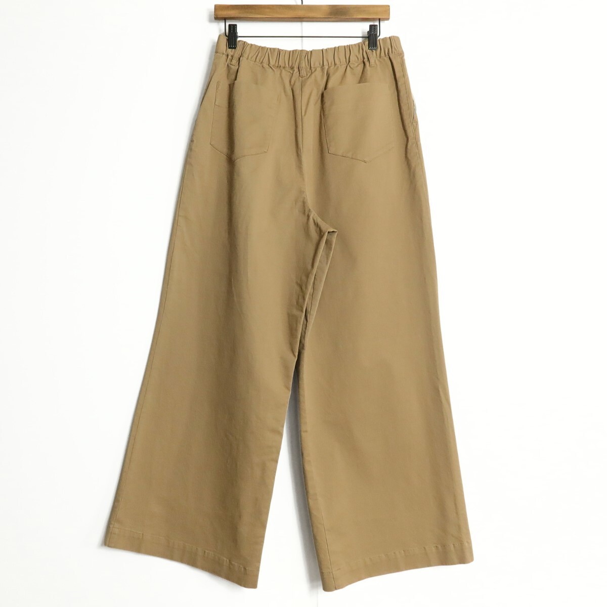 商品説明 | 【実寸約】ウエスト76~ヒップ112股上35股下70太もも幅34.5(cm) 【サイズ表記】 4(L) 【素材】 綿97ポリウレタン3 【状態】試着程度・未使用品 【デザイン】薄茶系 ロング丈のワイドパンツです。 薄手/無地 ポケットあり/ウエスト後ろゴム |