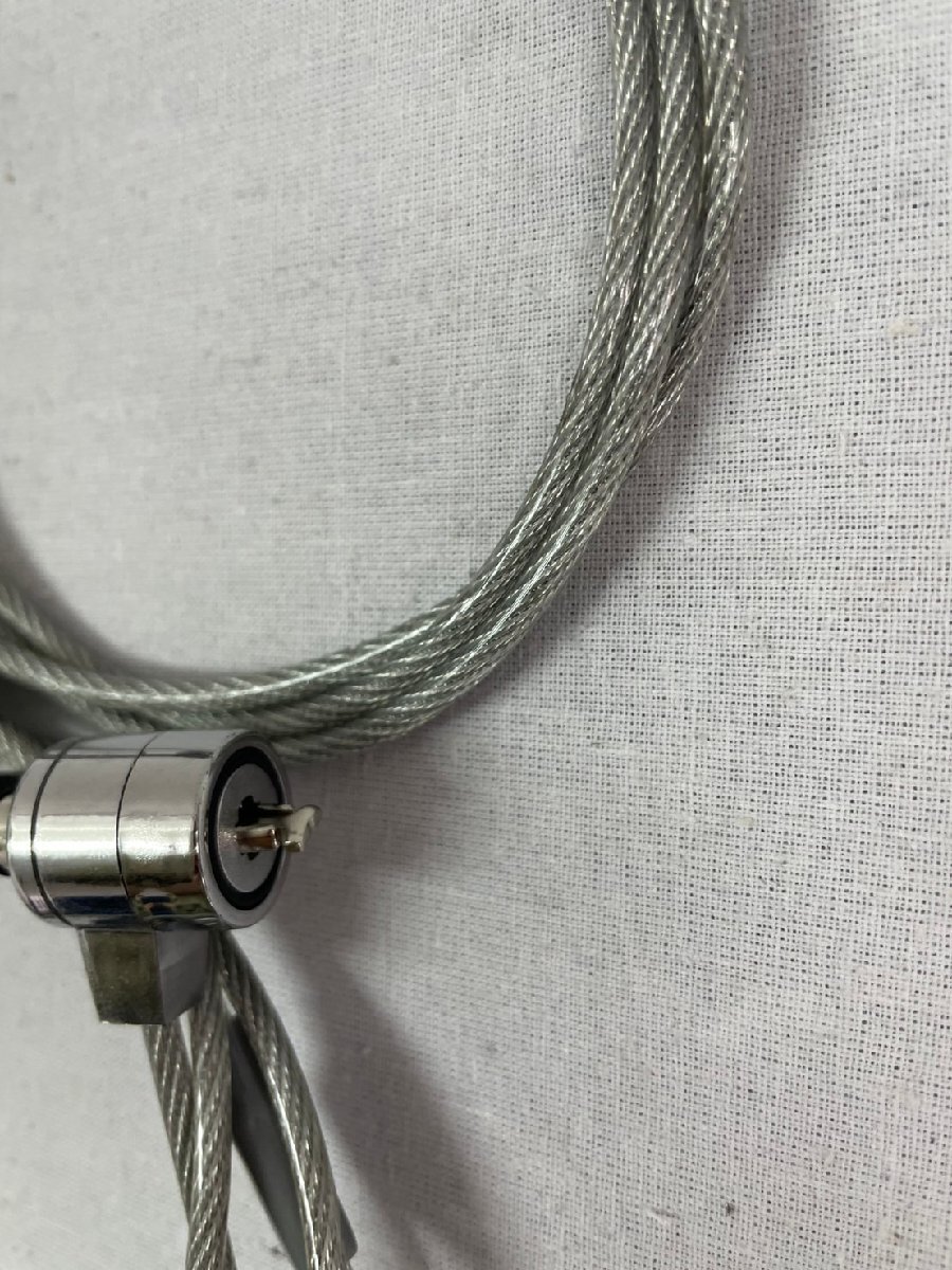 ノートパソコン盗難防止対策に:会社の職場や図書館などの施設でノートパソコンを使う際の盗難防止に役立つノートパソコンワイヤーロックです。ちょっとした用事でノートパソコンを置いたまま離席する時のセキュリティ対策にお使いいただけます。PCワイヤーロックの設置方法が簡単:ワイヤーの輪になっている方を、テーブルの脚などに括りつけて簡単に設置することができます。長さは1.2mなので、少し太めのテーブルの脚などにも取り付けることが可能です。ロックと開錠もしやすい:ワイヤーを設置したら、あとはワイヤーロックのロック部分をパソコンのセキュリティスロットに差し込んでボタンを押すだけでワイヤーに接続することができます。開錠の際はパソコンカギをセットして右回りに回転させることでロック解除ができるPC盗難防止ワイヤーなので、ダイヤルロック式のように番号を覚える必要もありません。持ち運びしやすく外出先で使いやすいパソコン盗難防止ワイヤー:持ち運びの際はワイヤーを結んでコンパクトなサイズにすることができます。ビジネスバッグなどにも収まるサイズなので持ち運びに便利です。セット数:2個 全長:約1.2m(スロットの大きさ3mm×7mmに対応) 重量:約50g カラー:シルバー ※モニターの環境等により、色の見え方に若干差が生じる場合がございます。【中古品】開封済みの未使用品になります。動作確認は行っていない為、動作保証は致しかねます。あくまで中古品になる為、何卒ご了承の上ご購入下さい。※送料高騰により北海道・沖縄などの遠方へのお届けの場合、別途送料を頂戴します。(一律1500円)ご理解ください。離島へのお届けは致しかねます。