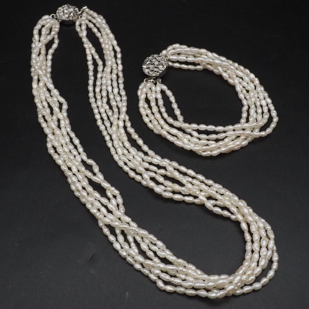 C668 淡水真珠 パール ネックレス ブレスレット セット 6連 デザイン シルバー 6月誕生石