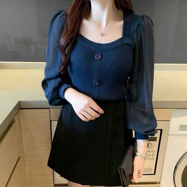 3.シアー素材のパフスリーブ