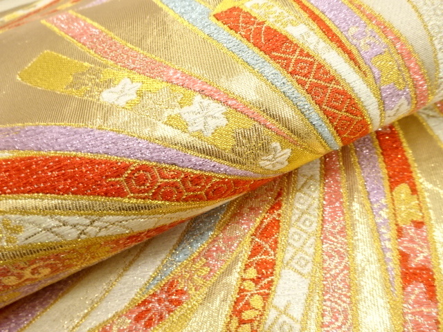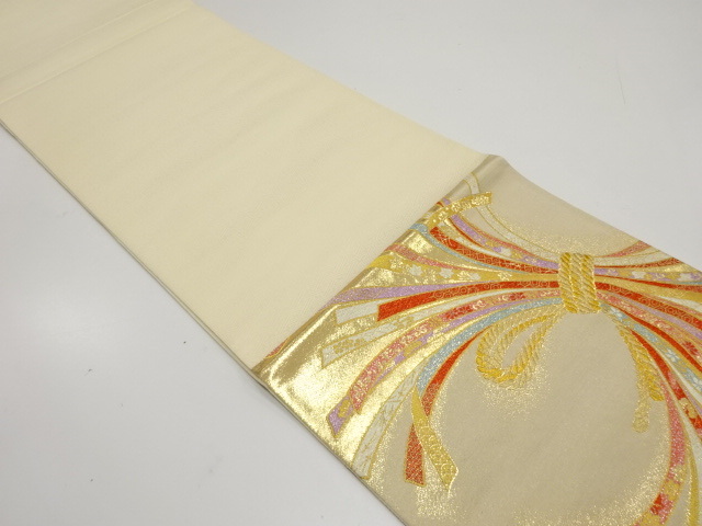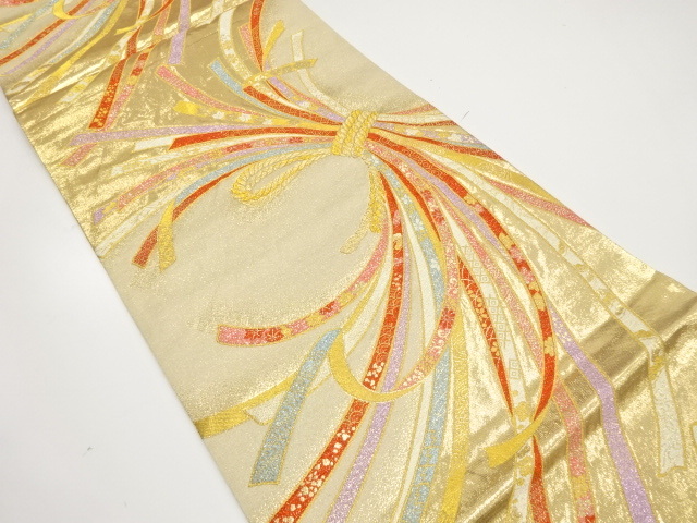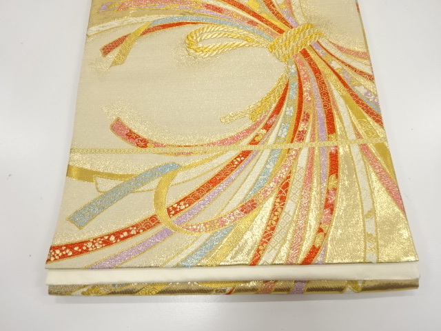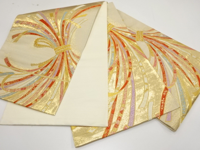 美品 束ね熨斗模様織り出し 振袖用 袋帯 (IH4K-023)