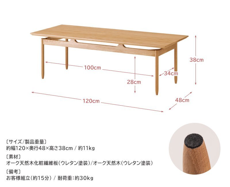 まるでオーク無垢材だけ仕上げたような雰囲気を持つリビングテーブル