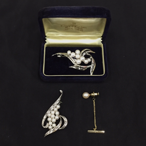 | ミキモト □S刻印 パール ブローチ 他 ブランド不明 K18 タイタックピン 含 アクセサリー 総重量約21.9g 計3点 A20387 |